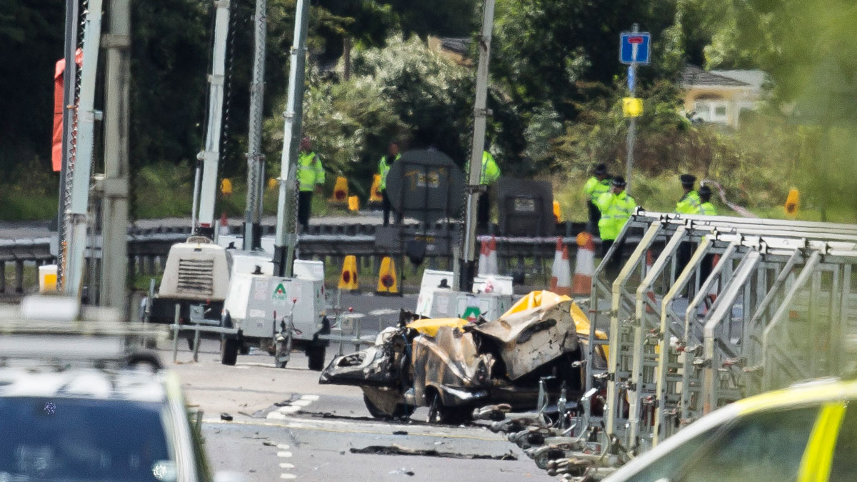 The vintage Hawker Hunter jet crashed on the A27 dual carriageway on 22 August 2015, bursting into flames and destroying several vehicles.