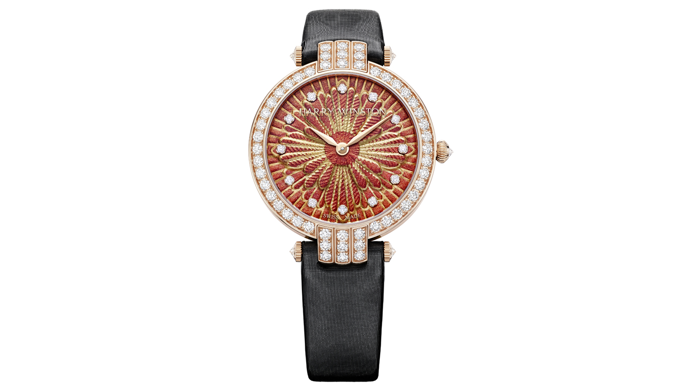 From peacock feathers to butterfly wings, Harry Winston is adept at effortlessly incorporating unusual materials into its Premier collection. This model, which takes its inspiration from the nobility of Europe's royal houses, features a dial made from a rich red raw silk that has been delicately embossed with a star-shaped motif – a technique normally reserved for less fragile fabrics such as leather. The watch is powered by an automatic movement, with signature gold rotor and refined finishing viewable through the sapphire case back.