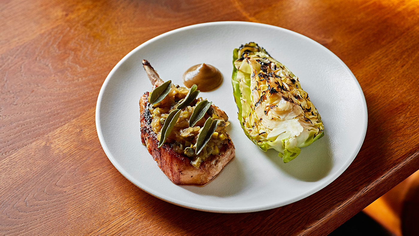 I really love our roast cauliflower, golden raisins, capers, soft polenta and salted grapes. It's a cauliflower steak with polenta on the side, and it is such a great dish for vegetarians or meat lovers as it's so delicious and substantial too.