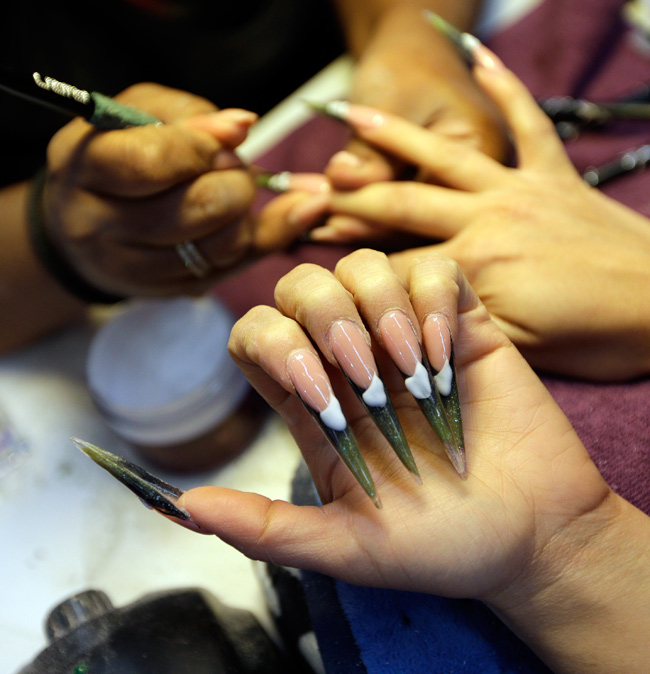 Remember during the summer Olympics when it became a "thing" for athletes and fans to sport their national pride on their nails? It was, for the most part, adorable. But when you actually give nail art its own competition, the result can be far from cute, if not downright frightening. Thanks to The Associated Press, we have a behind-the-scenes look at something called the Nail Olympics, which takes place this week in Rome. The competition is, perhaps shockingly, in its 12th year, having started in Las Vegas in 2001. A jury of eight people from Japan, the U.S., Korea, Italy, Sweden, and the Czech Republic hold the fate of the 220 competitors in their hands. Out of this uniquely talented group, only a few will emerge victorious within the seven specialties, including the "stiletto" category, which features painted nails shaved down to impossibly sharp points that would make Freddy Krueger squeal. Still intrigued? Read on (if you dare):