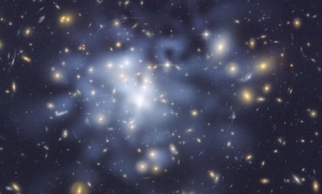 Think of dark matter as the invisible glue that holds the cosmos together, allowing things like fast-spinning galaxies to retain their shape. Evidence of dark matter's existence first emerged in the 1930s, when researchers tried to calculate the total mass of far-off solar systems by analyzing their rotation rates. Physical things, like planets and stars, were accounted for in the formula. But when all that visible stuff was tallied, the total mass didn't quite add up. That's where dark matter comes in, which physicists use to fill in mathematical gaps. The mystery particles are thought to comprise as much as 80 percent of the universe around us.