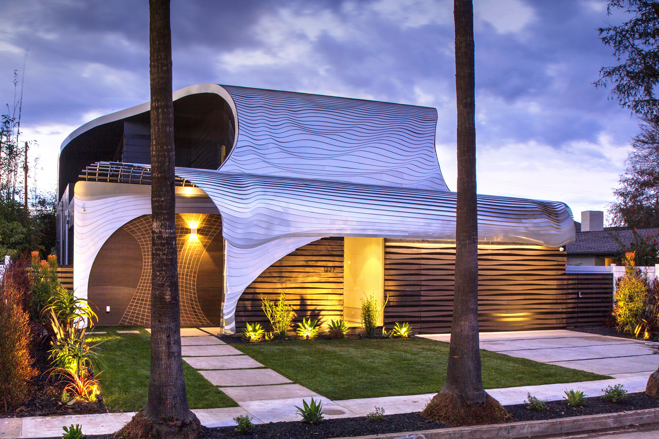 Venice, California. Mario Romano built the Preston House, a six-bedroom home with an aluminum façade. The interior includes organic forms, new environmentally sensitive materials, wood details, and a large great room.