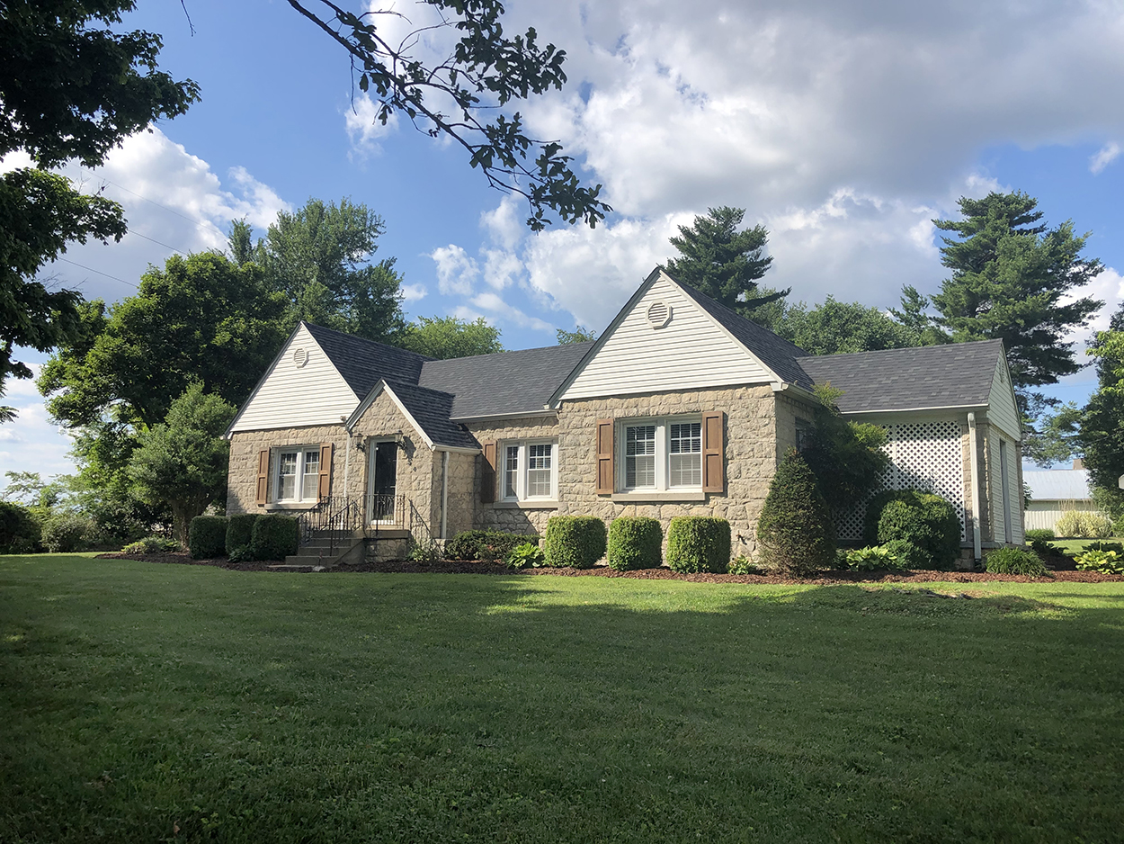 Bowling Green, Kentucky. The current owners fully updated this four-bedroom limestone farmhouse, built in 1950. The home features hardwood floors, crown moldings, arched doorways, French windows, farm-style kitchen cabinetry, a carved-wood fireplace, and a master bath with whirlpool, steam shower, and walk-in closet.