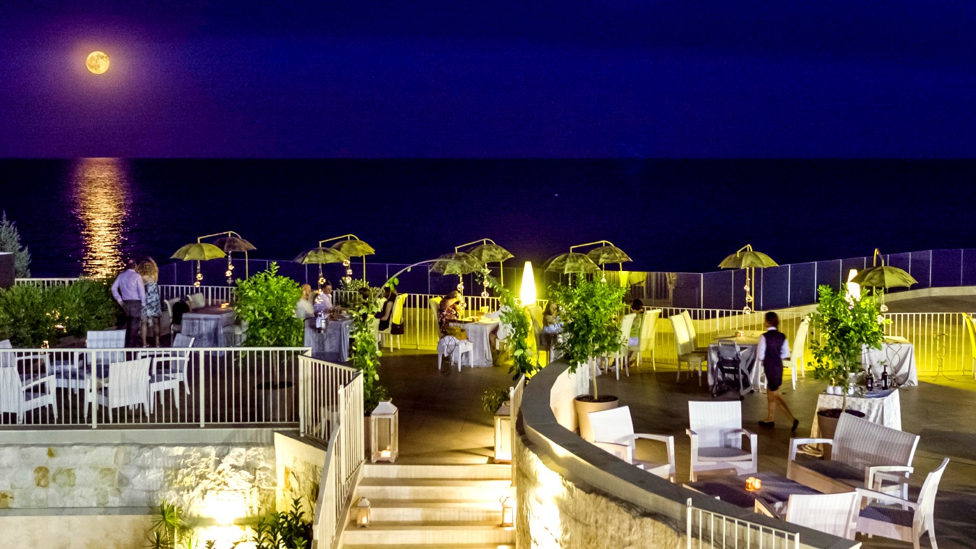 Then it does, briefly. A dolphin hoves into view about 25 metres out, breaching the surface of the water and causing mild commotion among the diners. It is quite the spectacle and transfixed us for a few minutes before it glided off to surprise diners elsewhere. I return to my truffle pasta: a signature dish of the restaurant, which migrates from Imola in northern Italy to Sardinia for the season, it turns out to be as thrilling as any impromptu dolphin sighting. The size of a small pancake, its surprise is a yellow egg yolk in its centre, providing even more depth of flavour to the dish.