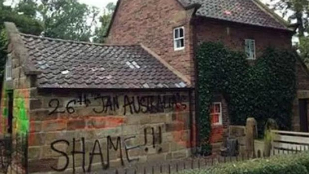 Some Australians – both indigenous and non-indigenous – refer to 26 January as "Invasion Day". They argue that the brutal treatment of the Aborigines by white settlers and the legacy of disease and addiction they inflicted on Australia's first people makes it impossible to celebrate the arrival of Europeans. The issue continues to be a hot-button. This week Captain Cook's historic home, rebuilt in Melbourne after being shipped from England, was sprayed with graffiti by activists in a protest against Australia Day. Phrases such as "26th Jan Australia's shame" were daubed on to the two-story stone building, known as Cook's Cottage, Sky News reports.