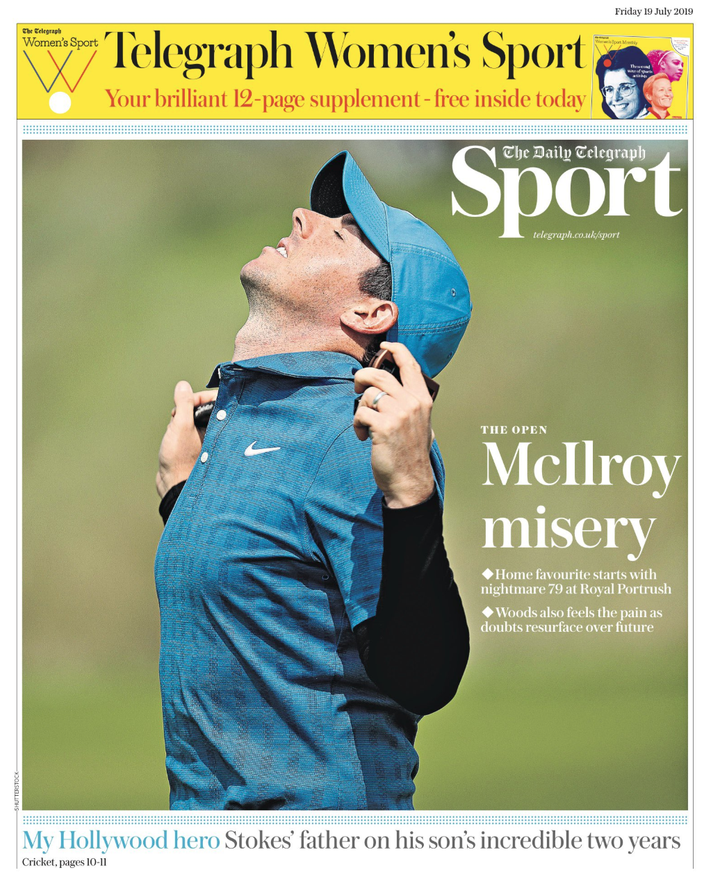 Today’s back pages: Rory McIlroy’s misery after meltdown at The Open