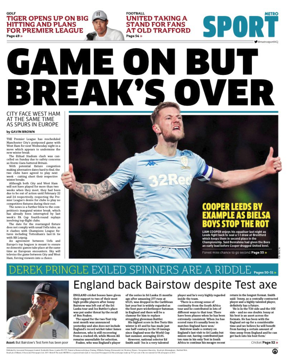The other story dominating the papers is the omission of Jonny Bairstow from England’s Test cricket squad for next month’s tour of Sri Lanka.