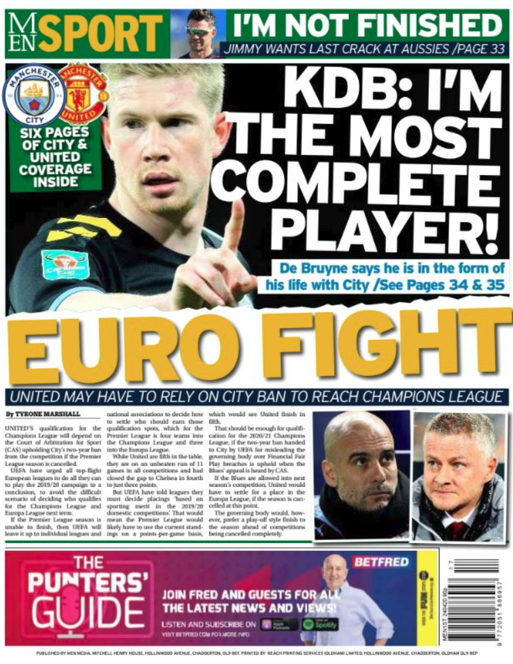 The Daily Mirror says that in making its decision, Uefa has “effectively taken the possibility of a null and void Premier League season off the table”, which it believes is good news for Liverpool.