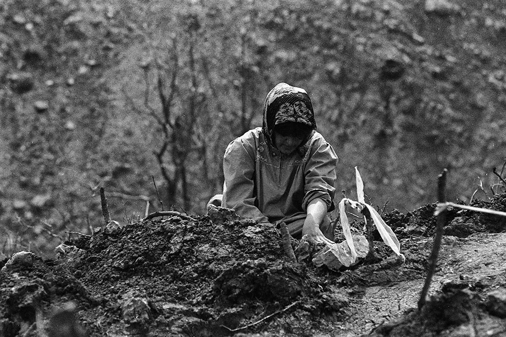 While the two exoduses are separated by more than three decades, the images from then and now are uncannily similar. The people's faces are stretched with worry; their backs are bent with what little remains of their homes. Whether in stark black and white or bracing color, the photographs below capture a sobering look at the chronic instability of their lives.