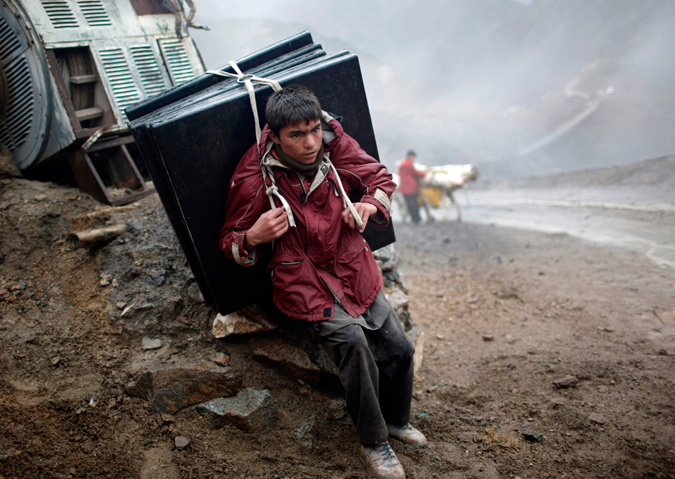 An Afghan boy carries election materials on his back to polling stations that are not accessible by road in Shutul, Panjshir province. (REUTERS/Ahmad Masood)