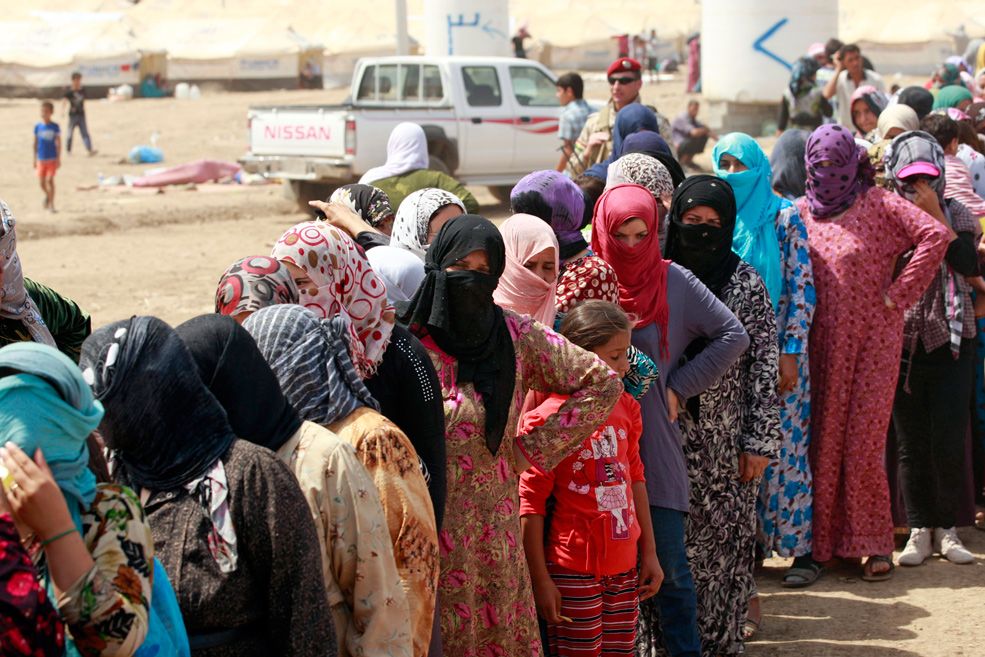 Aug. 21, 2013: Women wait in line for food at Kawergosk refugee camp in Irbil, Iraq. | (AP Photo/Hadi Mizban)