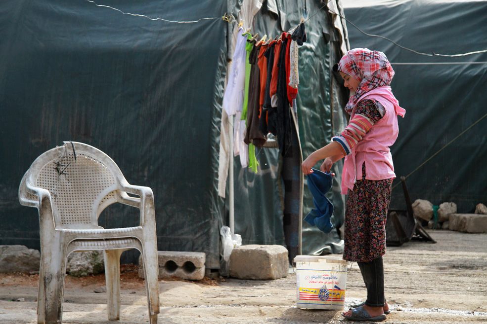 Feb. 15, 2014: A girl washes her family's clothes at Bab Al-Hawa refugee camp near the Syria-Turkey border. | (REUTERS/Mouaz Al Omar)