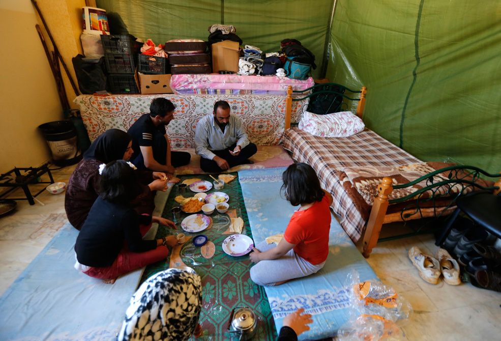 Oct. 28, 2013: A family eats a meal inside their makeshift room in a mosque, which is being used as an unofficial refugee camp, in Shebaa, Lebanon. | (REUTERS/Jamal Saidi)