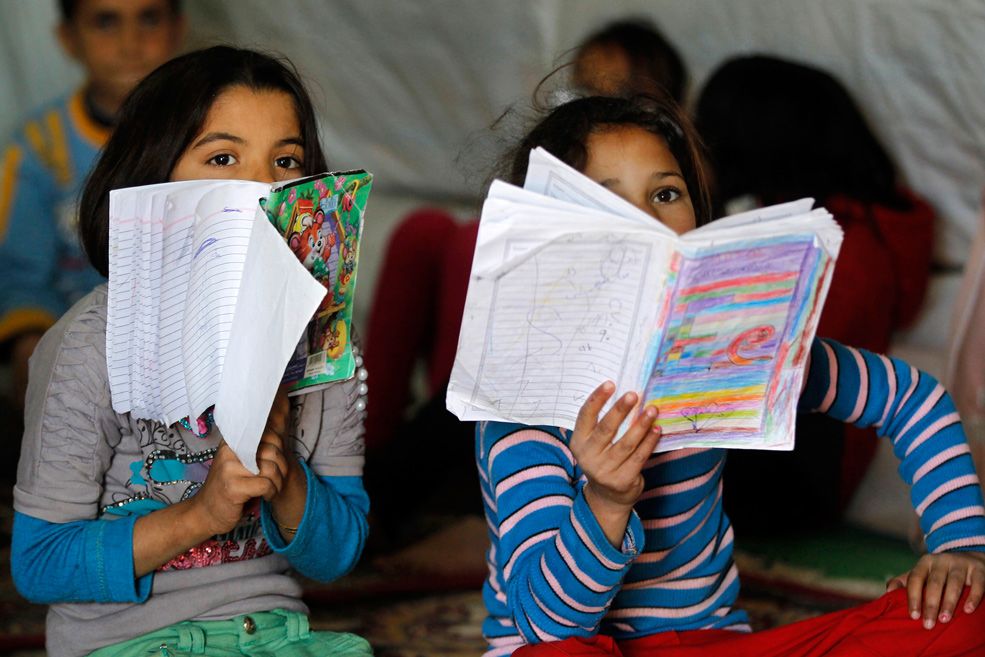 Dec. 23, 2013: Children attend classes at an unofficial camp near Amman, Jordan. A teacher-turned-refugee set up the makeshift school because the Jordanian schools are too far away. | (REUTERS/Muhammad Hamed)