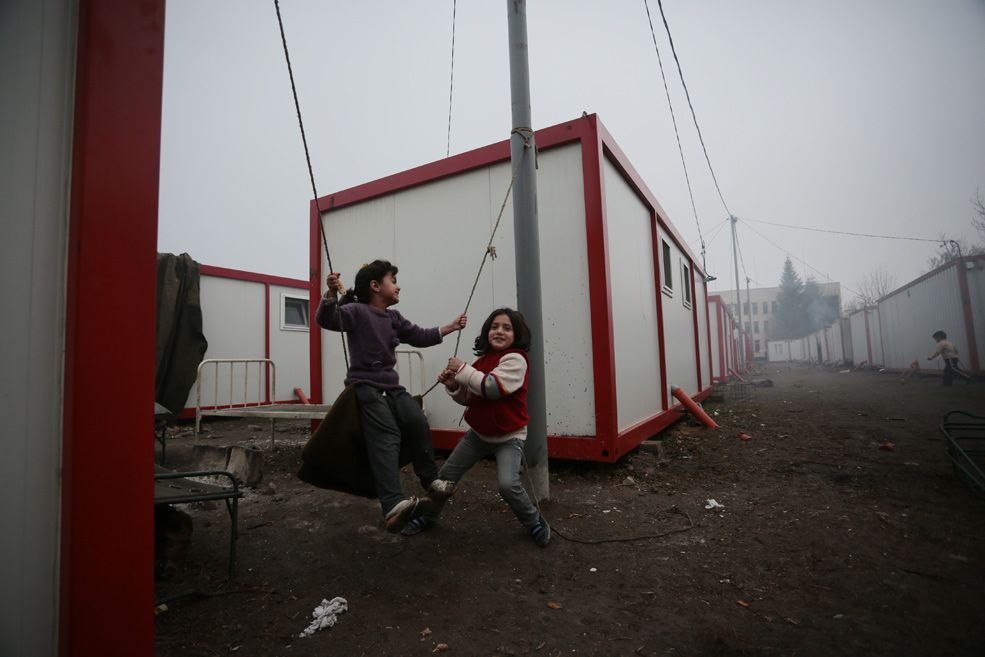 Nov. 21, 2013: Children play on a makeshift swing at Harmanli refugee camp in Harmanli, Bulgaria. | (AP Photo/Valentina Petrova)