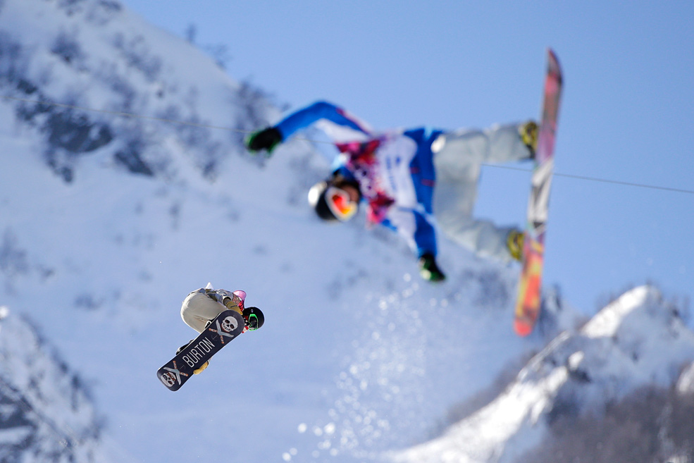 In some of the week's most inspiring images, a snowboarder basks in victory, bullets fly, and a pair of skaters break down in joyous tears