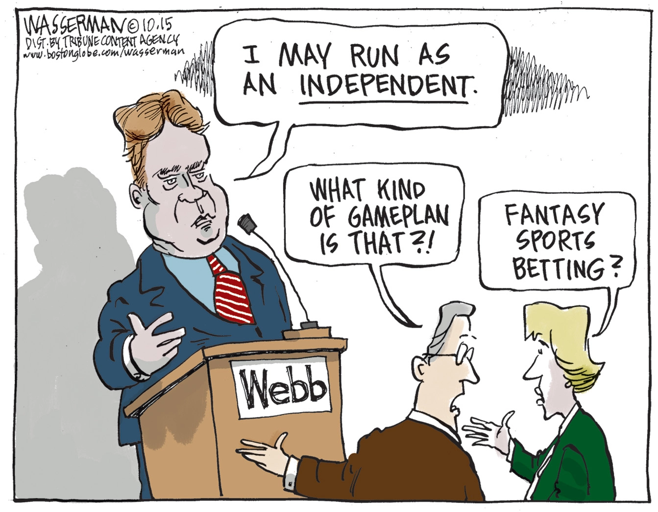 Political cartoon U.S. Jim Webb Independent Fantasy Sports