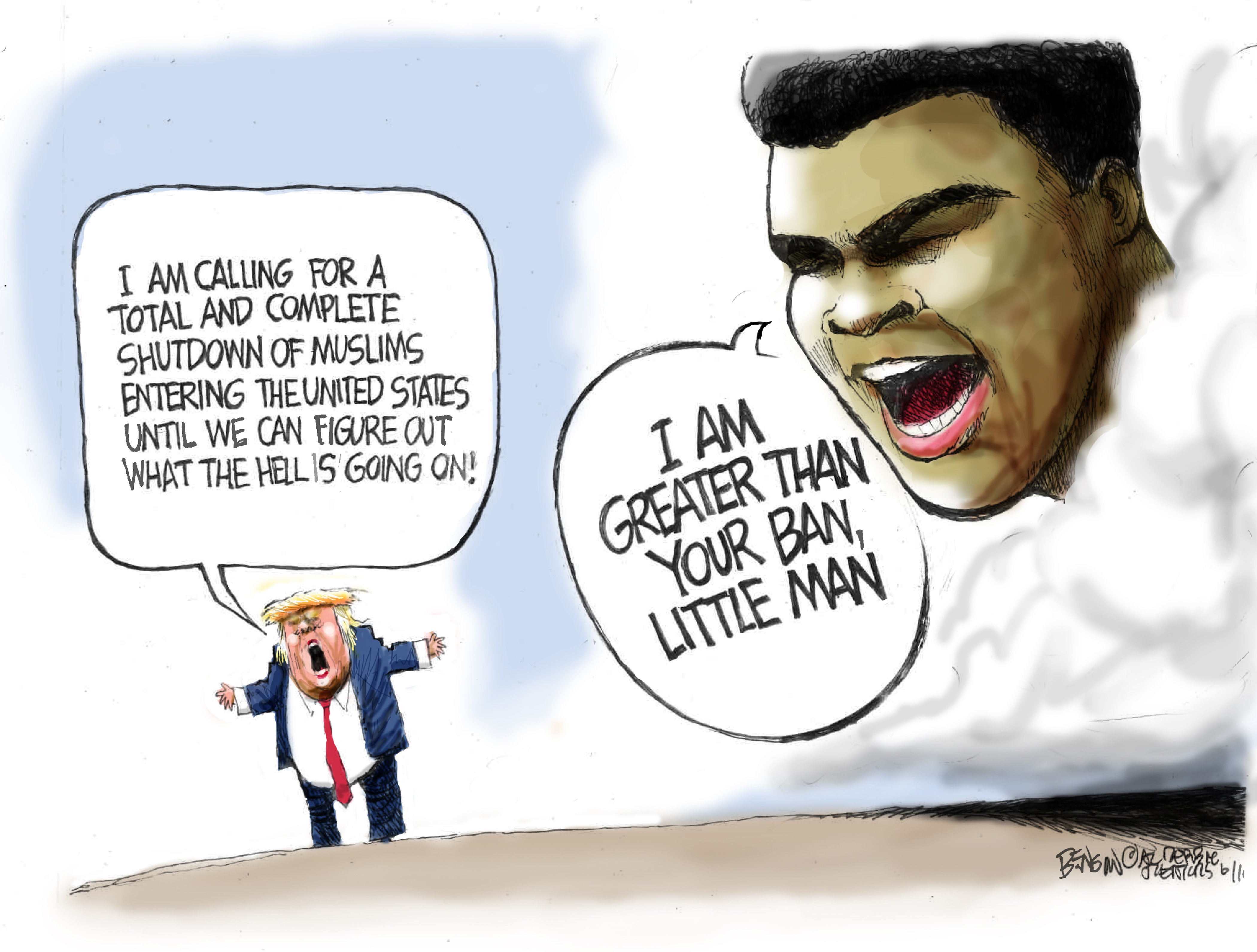 Political Cartoon U.S. Donald Trump Muhammad Ali Muslim Ban