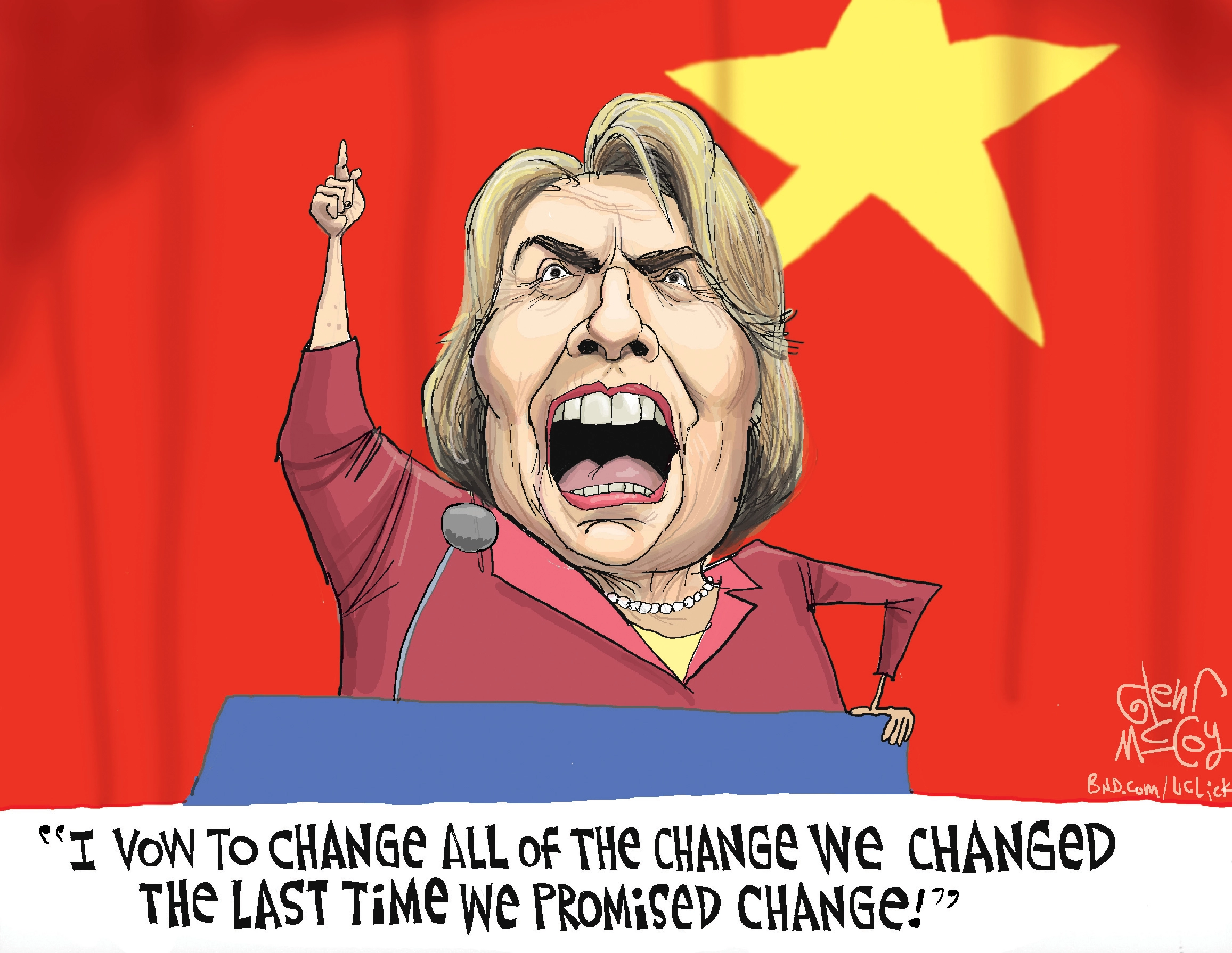 Political cartoon U.S. Hillary vowing to change all of the change