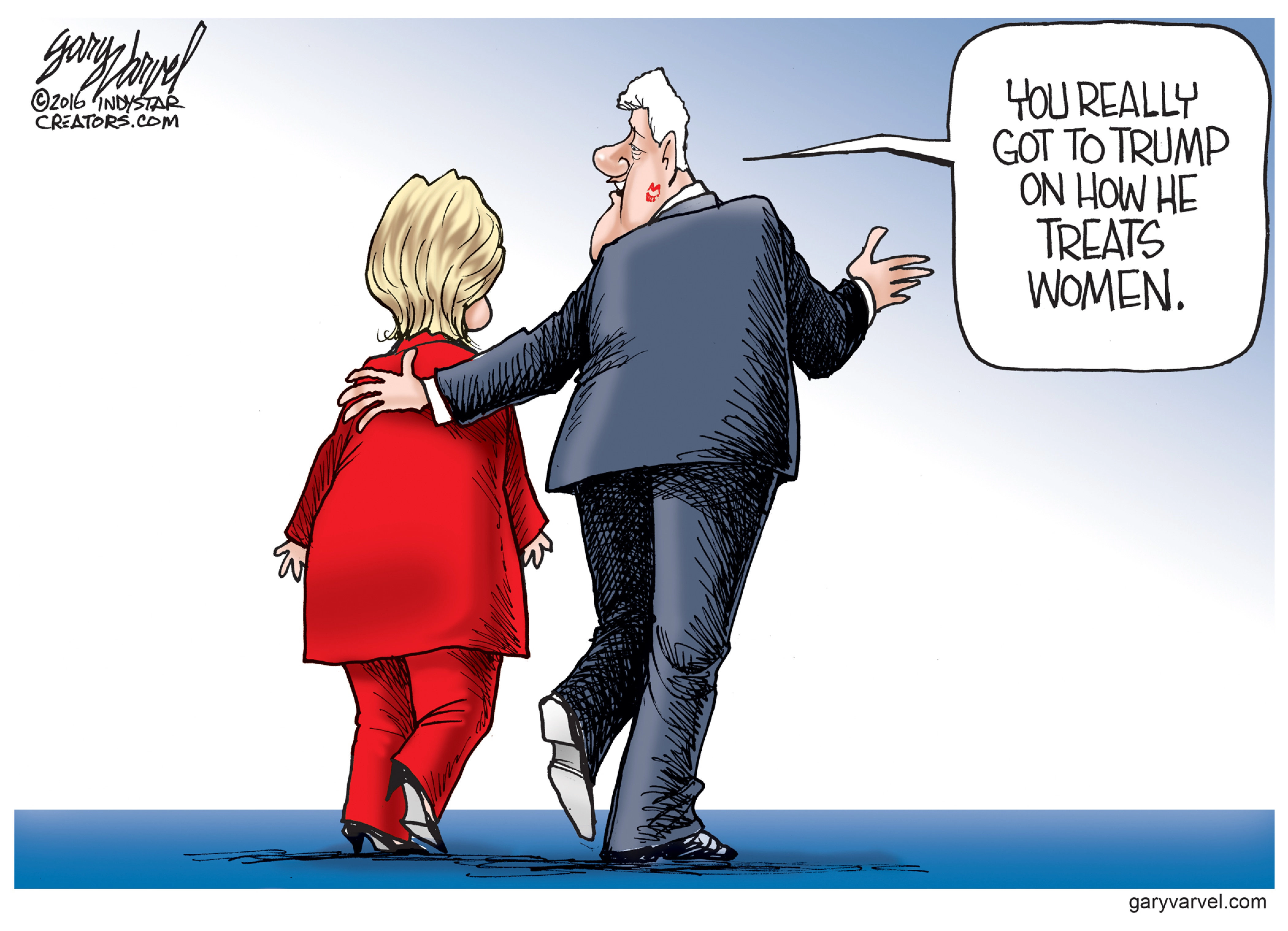 Political cartoon U.S. Hillary Clinton Donald Trump treatment of women