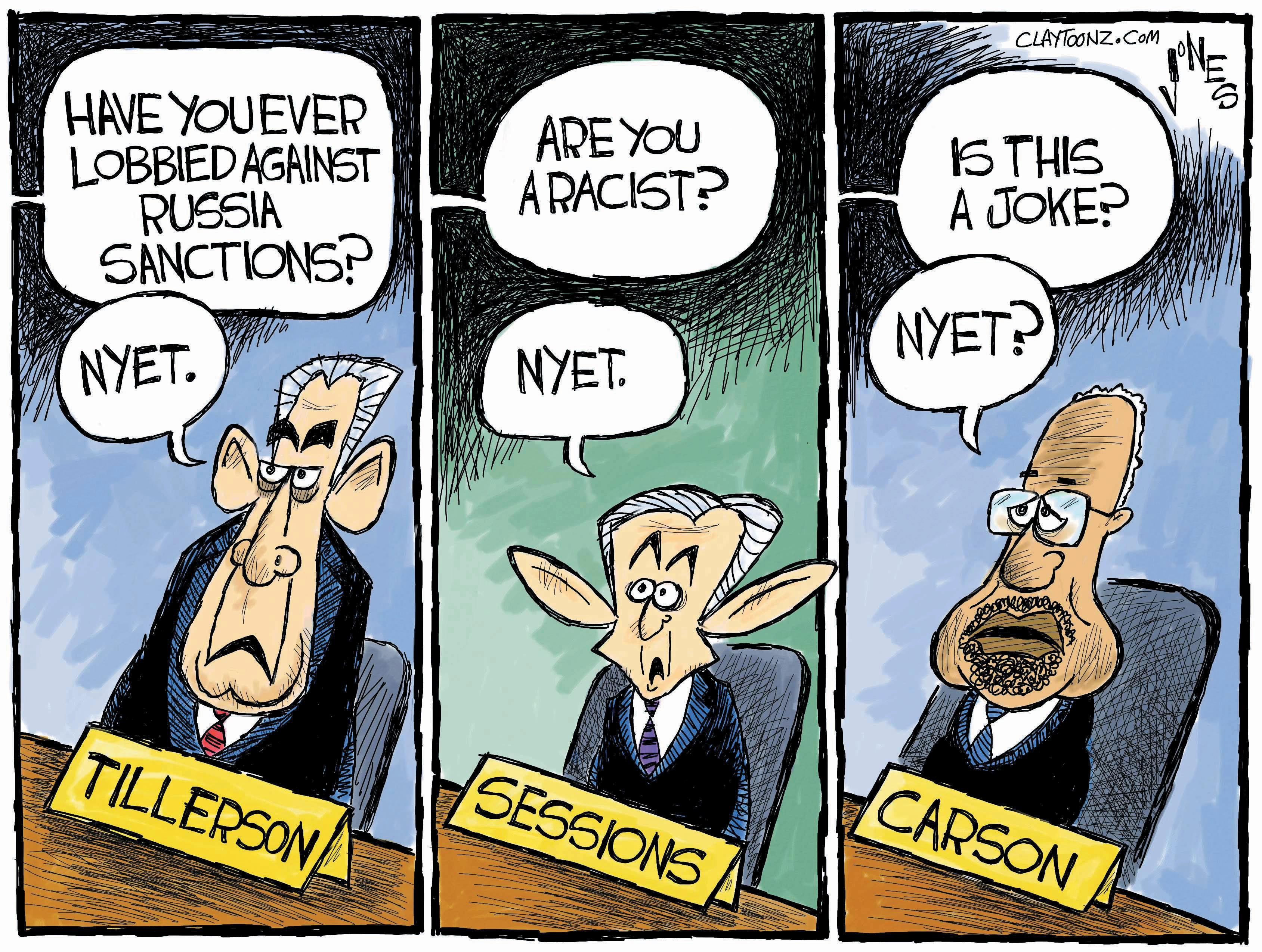 Political Cartoon U.S. Tillerson Sessions Carson Russia