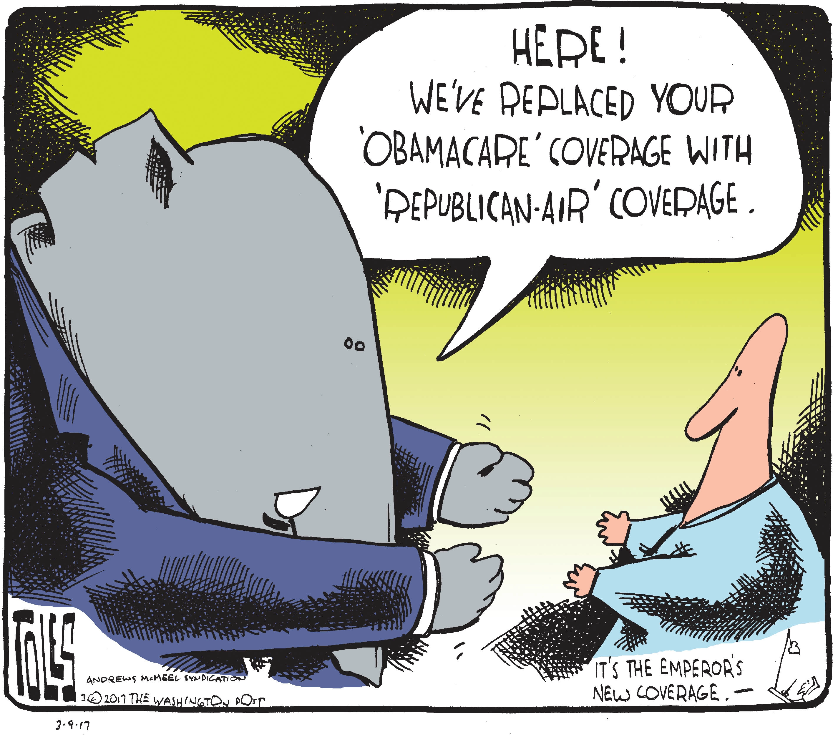 Political Cartoon U.S. Obamacare replacement GOP imaginary coverage