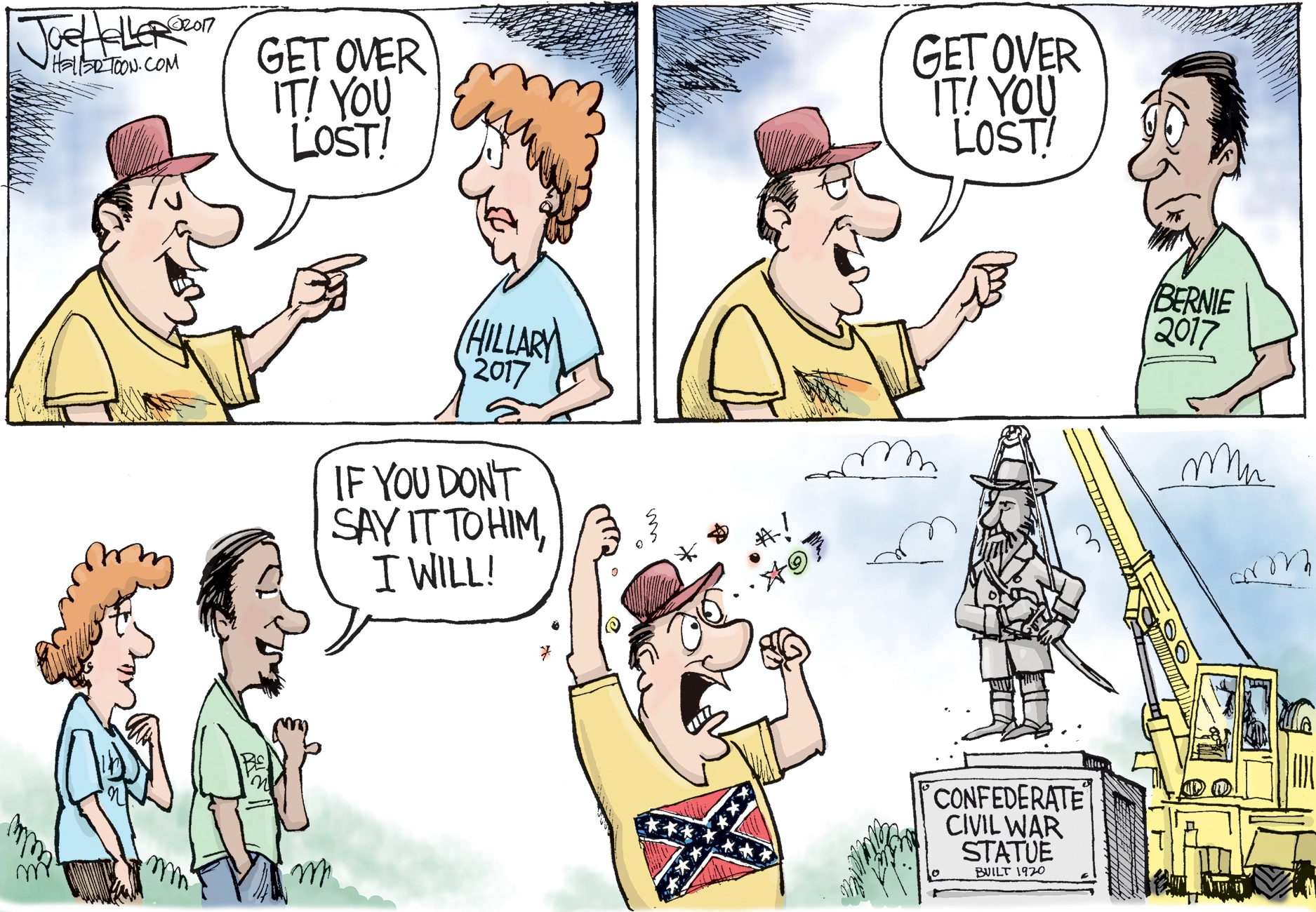 Political cartoon U.S. Clinton Bernie Sanders Trump supporter Confederate statue removal