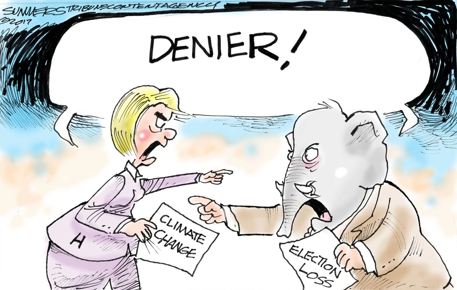 Political cartoon U.S. Clinton election GOP climate change deniers