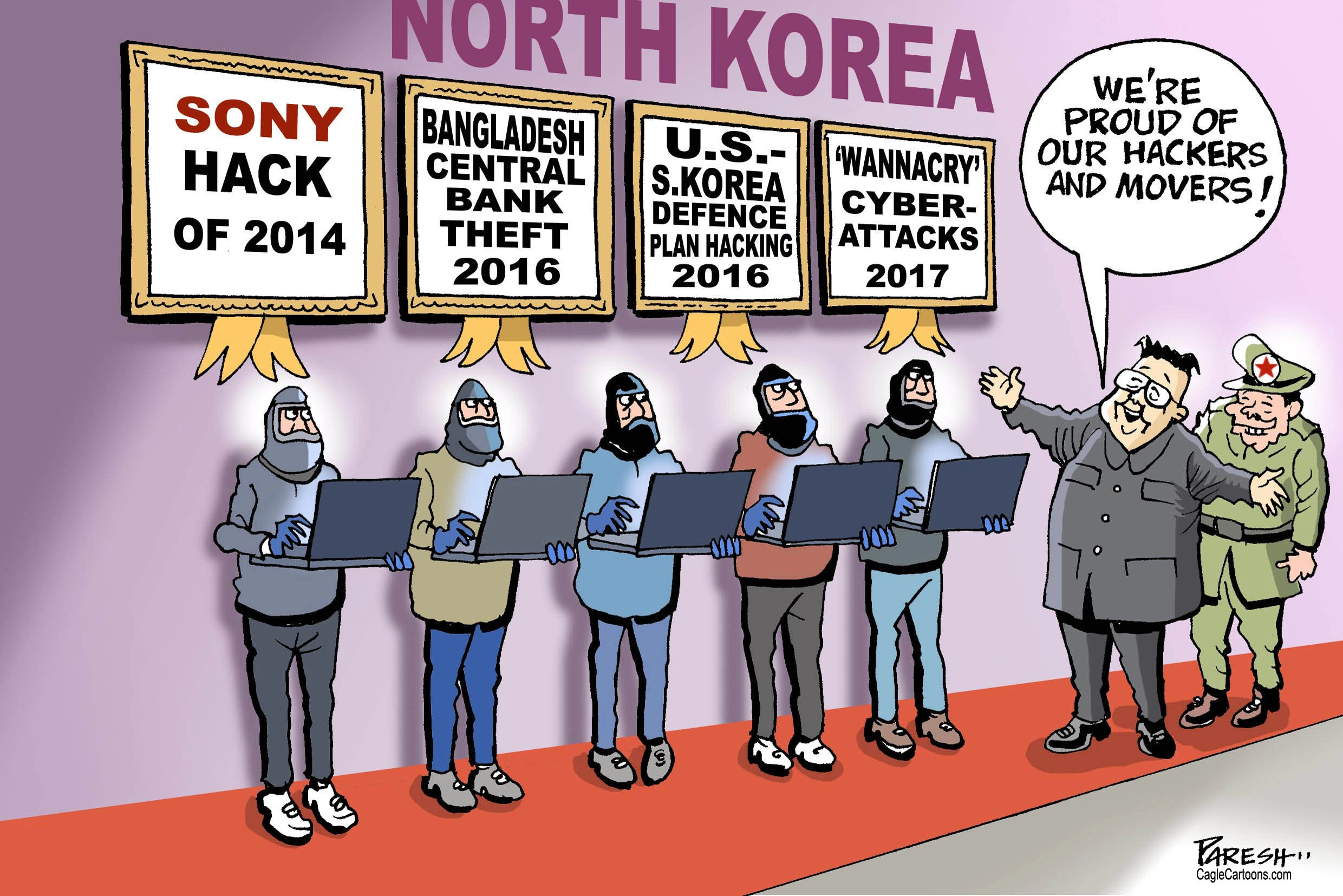 Political cartoon World North Korea hackers