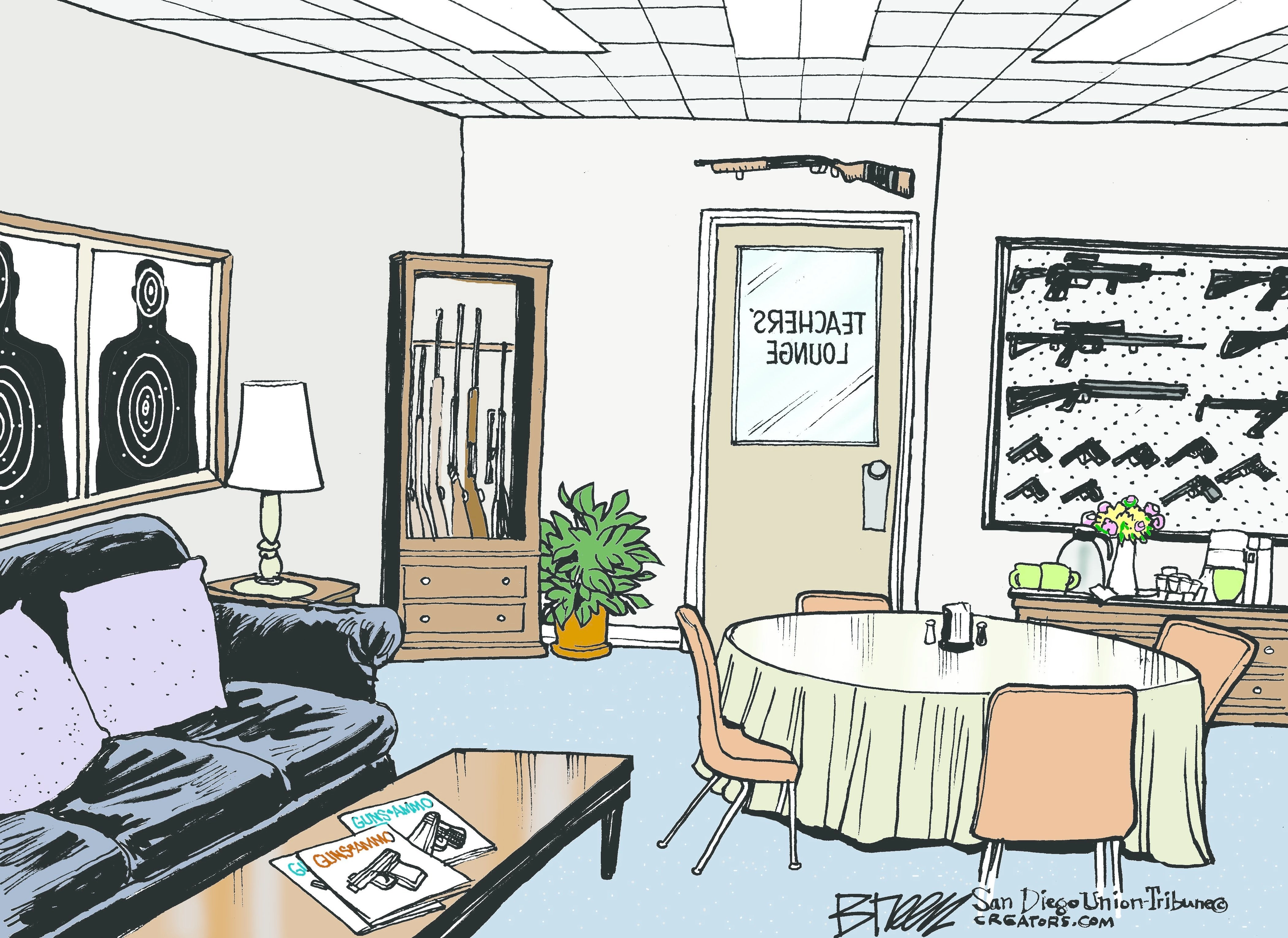 Political cartoon U.S. arming teachers gun violence NRA school shootings