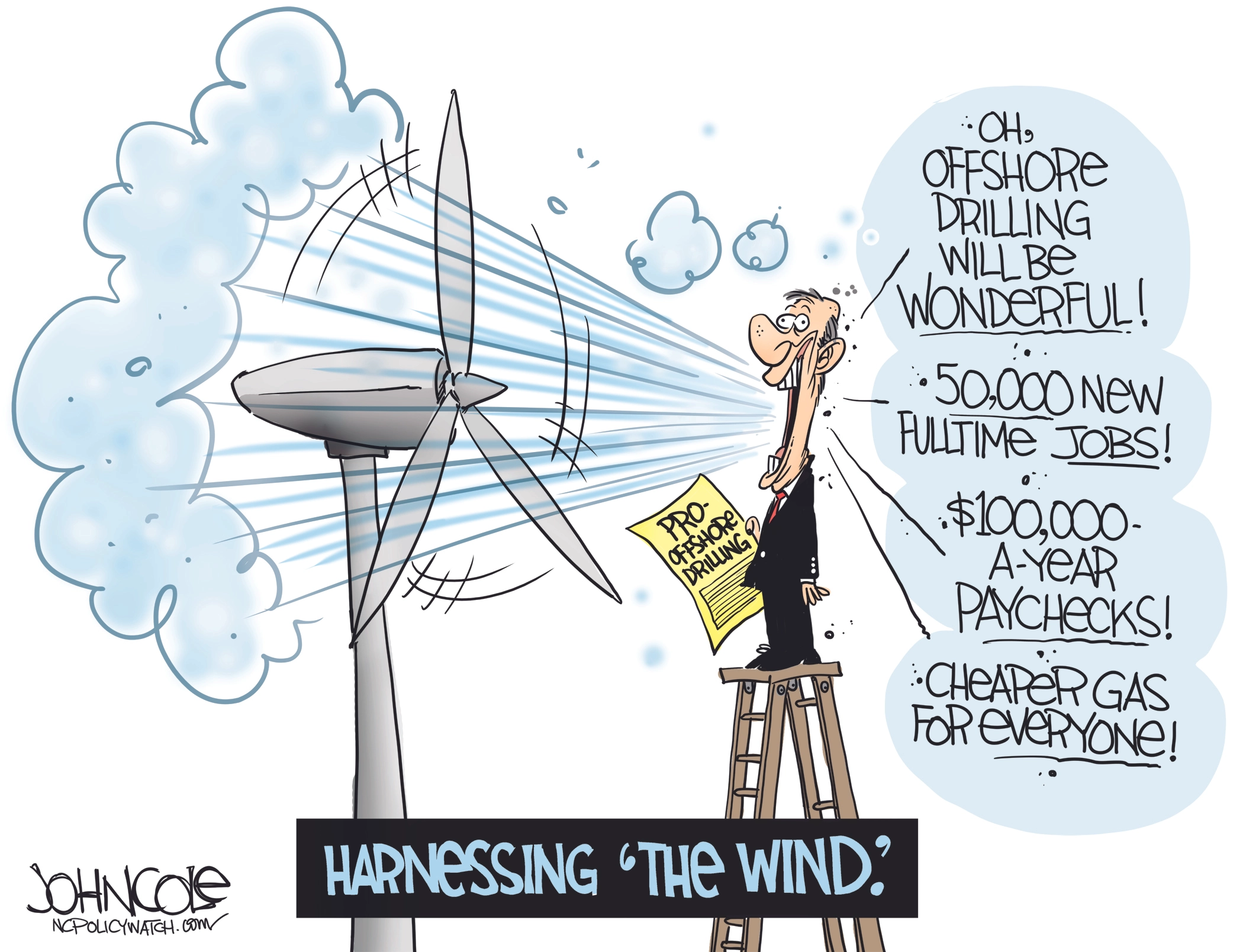 Political cartoon U.S. offshore drilling wind power economy jobs climate change