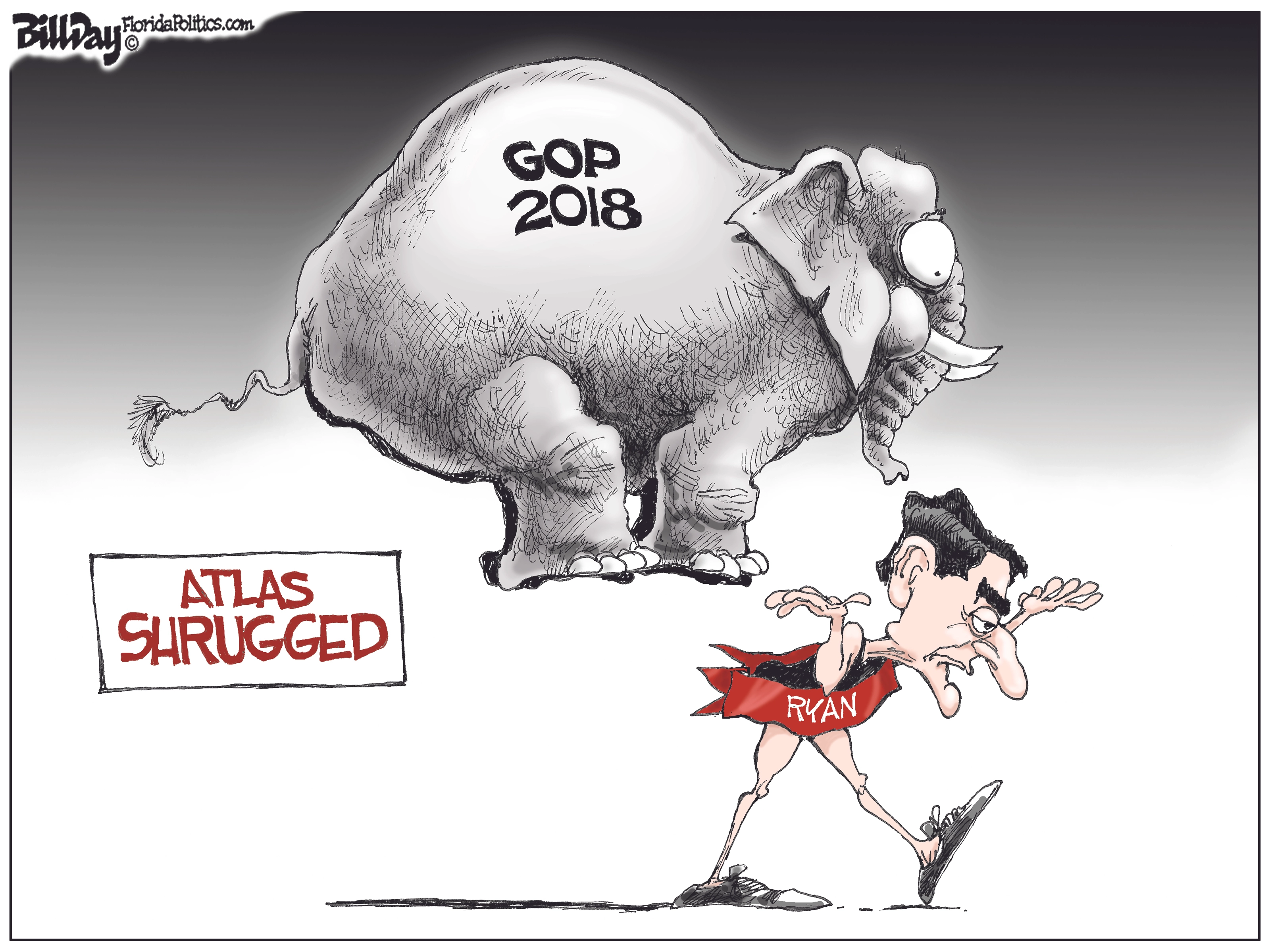Political cartoon U.S. Paul Ryan retirement midterms GOP Atlas Shrugged