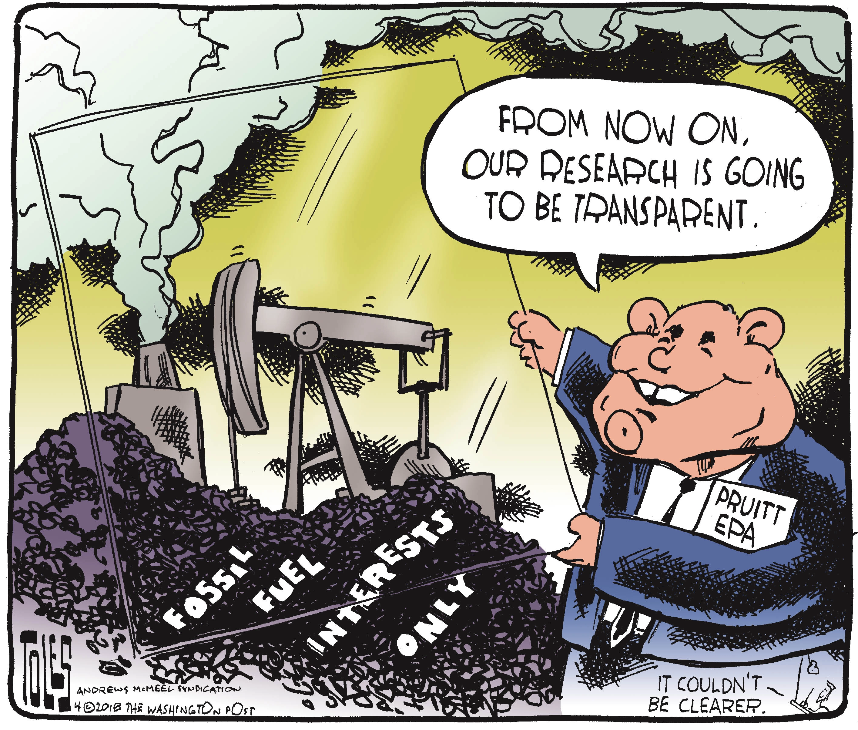 Political cartoon U.S. Scott Pruitt EPA transparency corruption