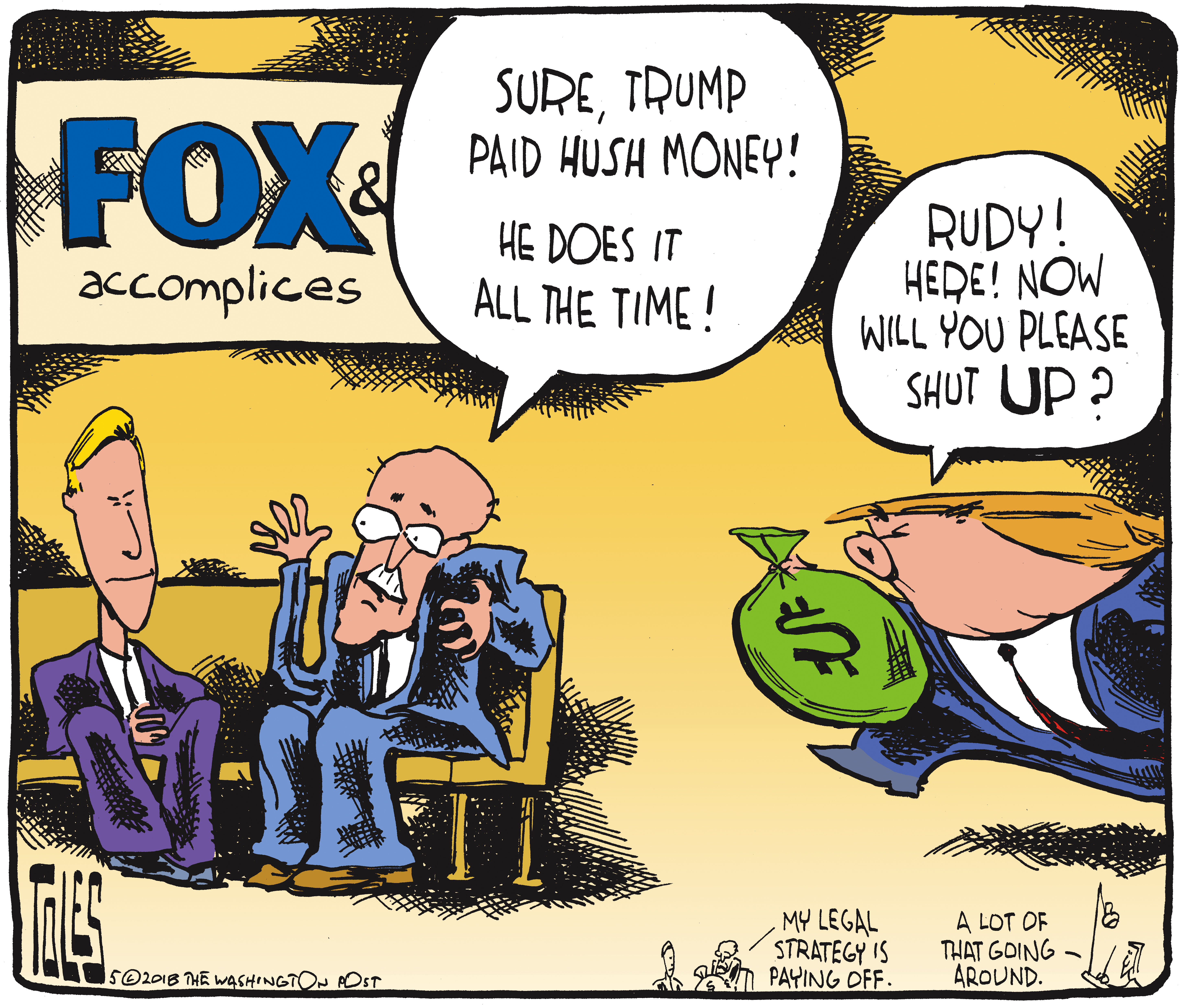 Political cartoon U.S. Rudy Giuliani Trump hush money Fox and Friends