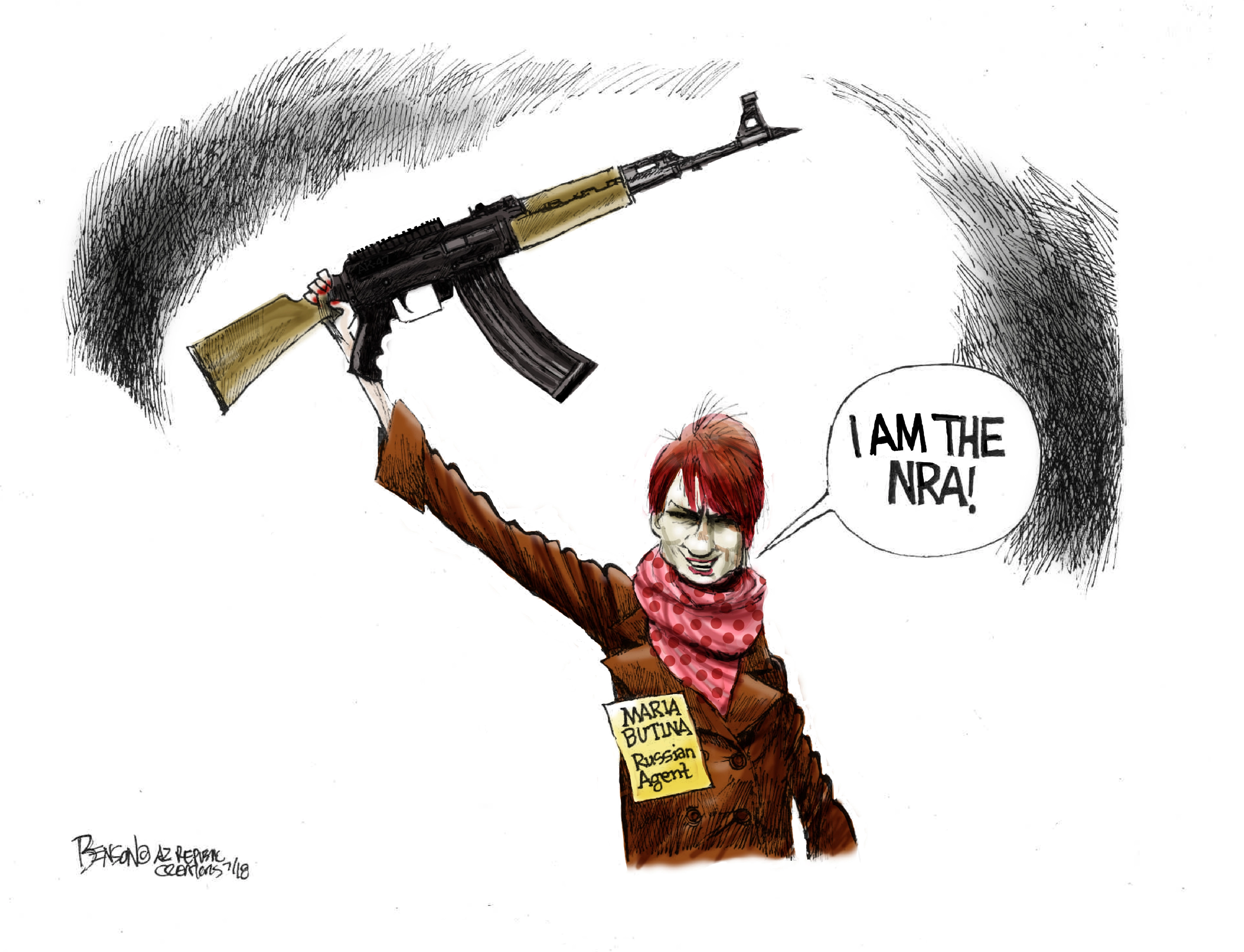 Political cartoon U.S. Maria Butina Russian agent arrest Trump Putin NRA collusion