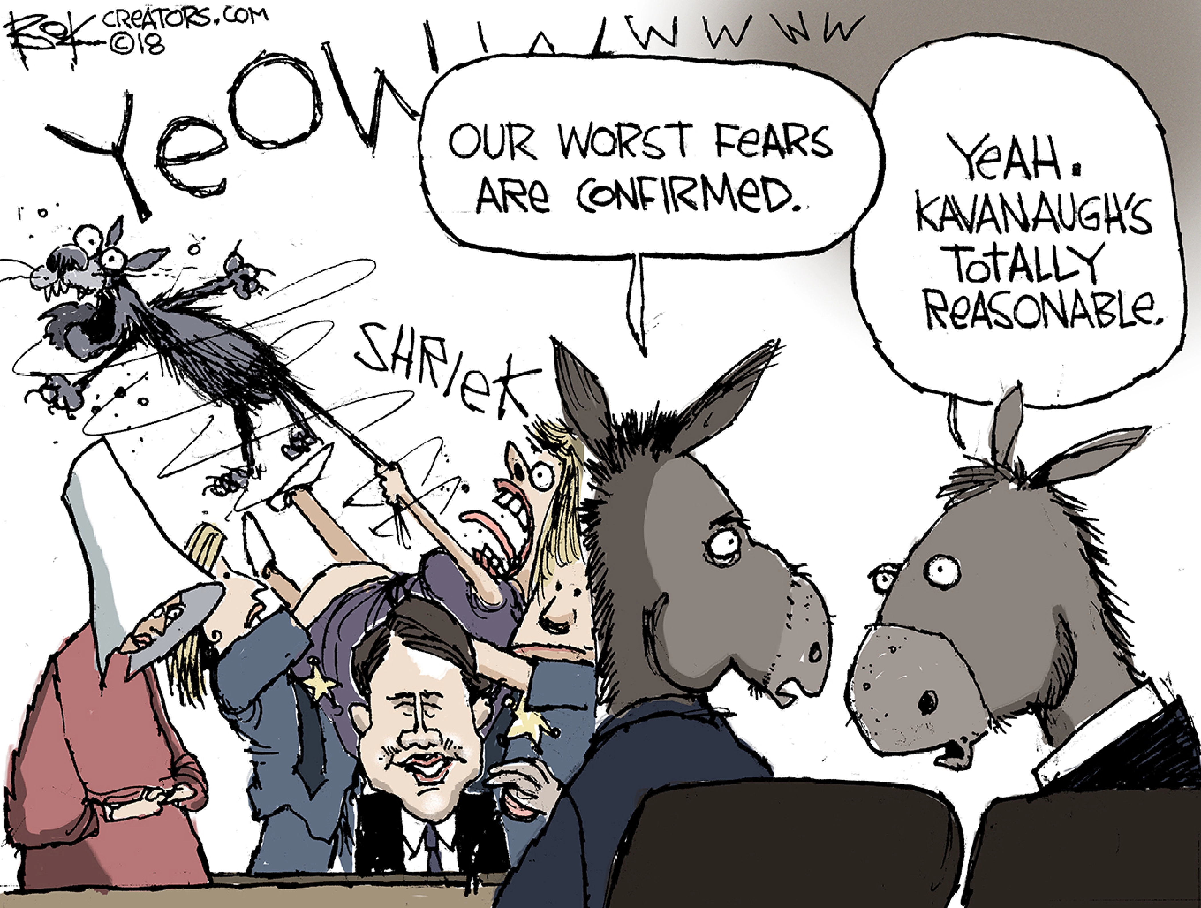 Political cartoon U.S. Brett Kavanaugh confirmation Democratic protests