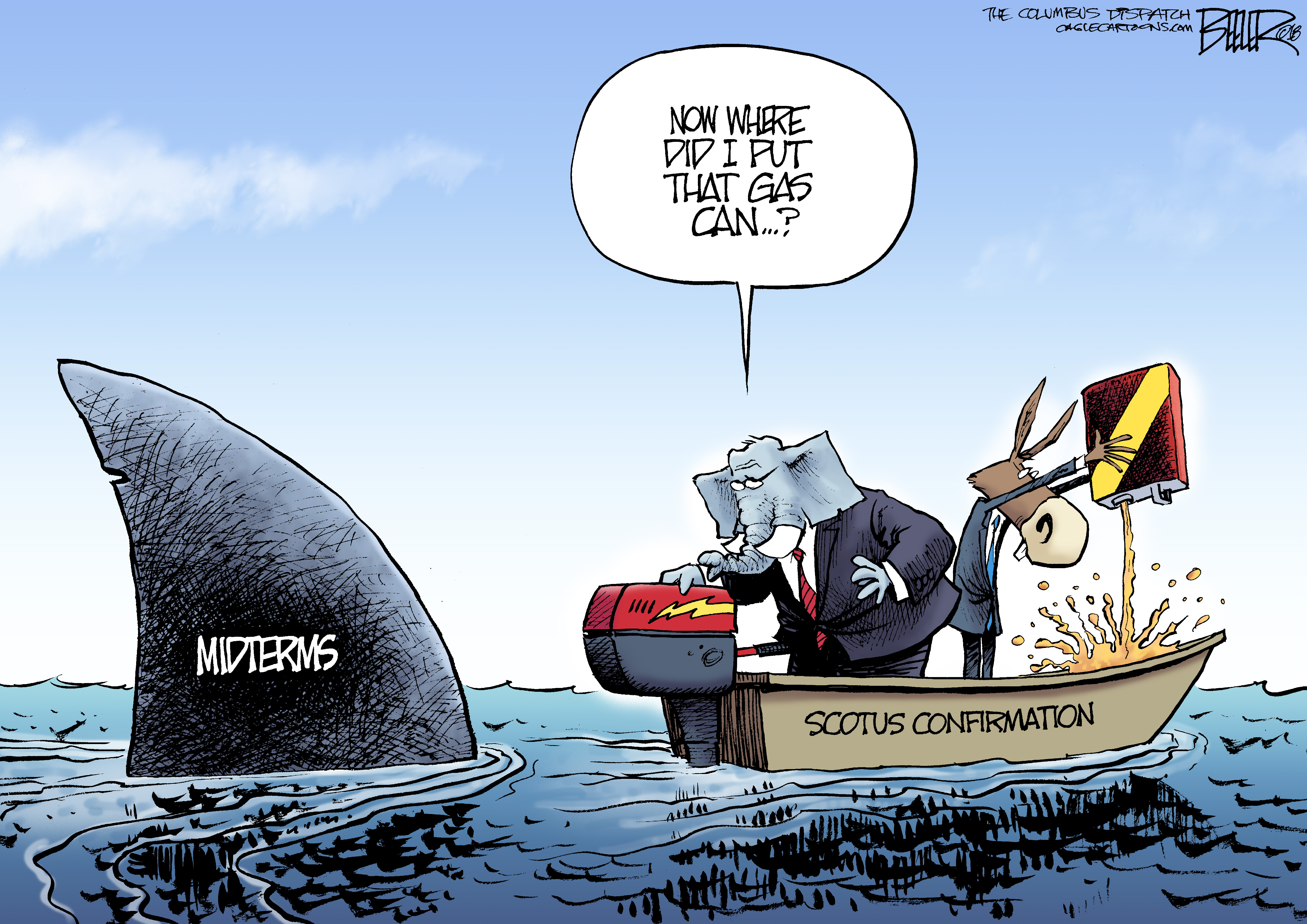 Political cartoon U.S. Democrats Republicans midterms Brett Kavanaugh confirmation hearings