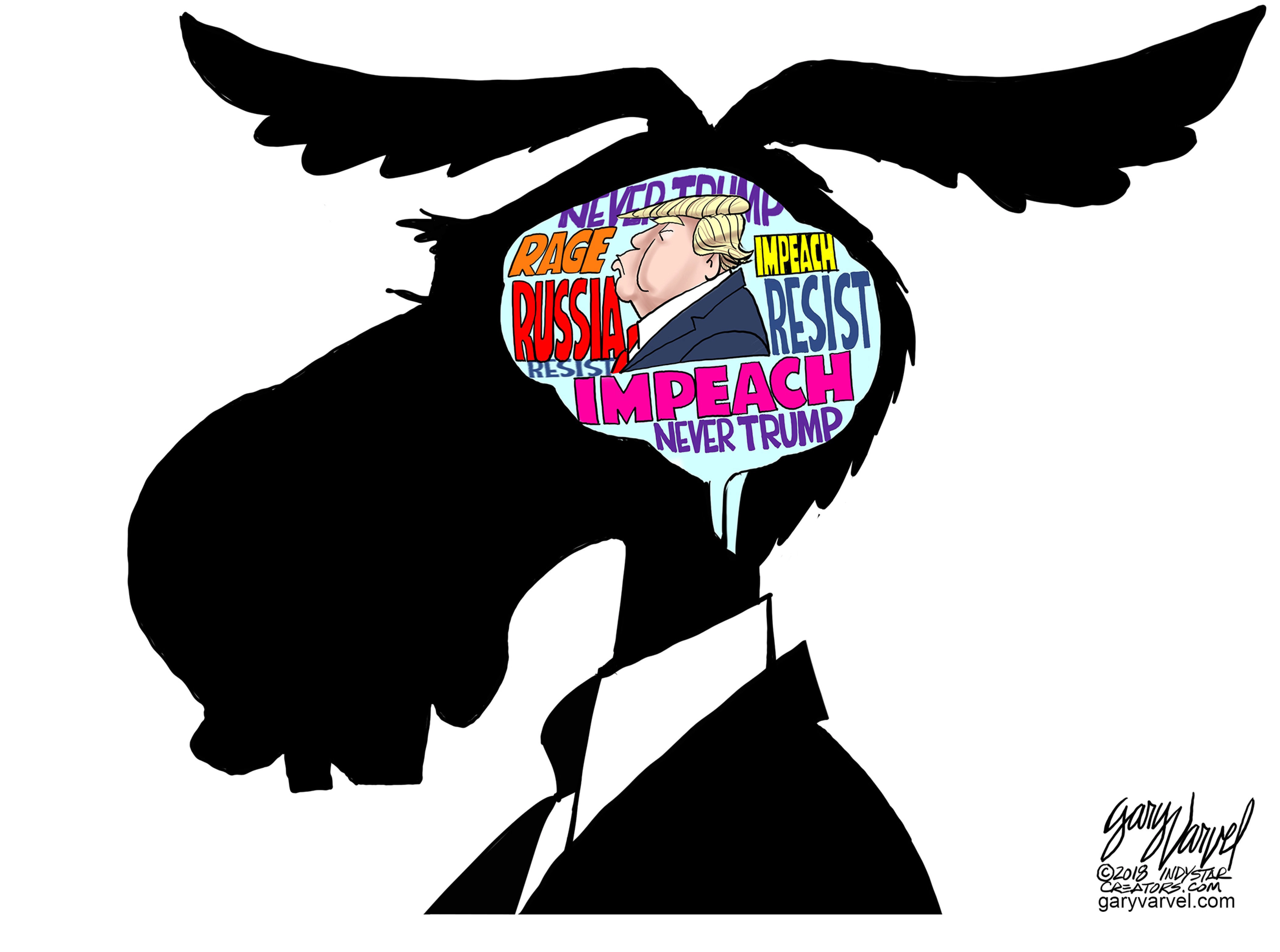 Political cartoon U.S. democrat brain never Trump impeach resist