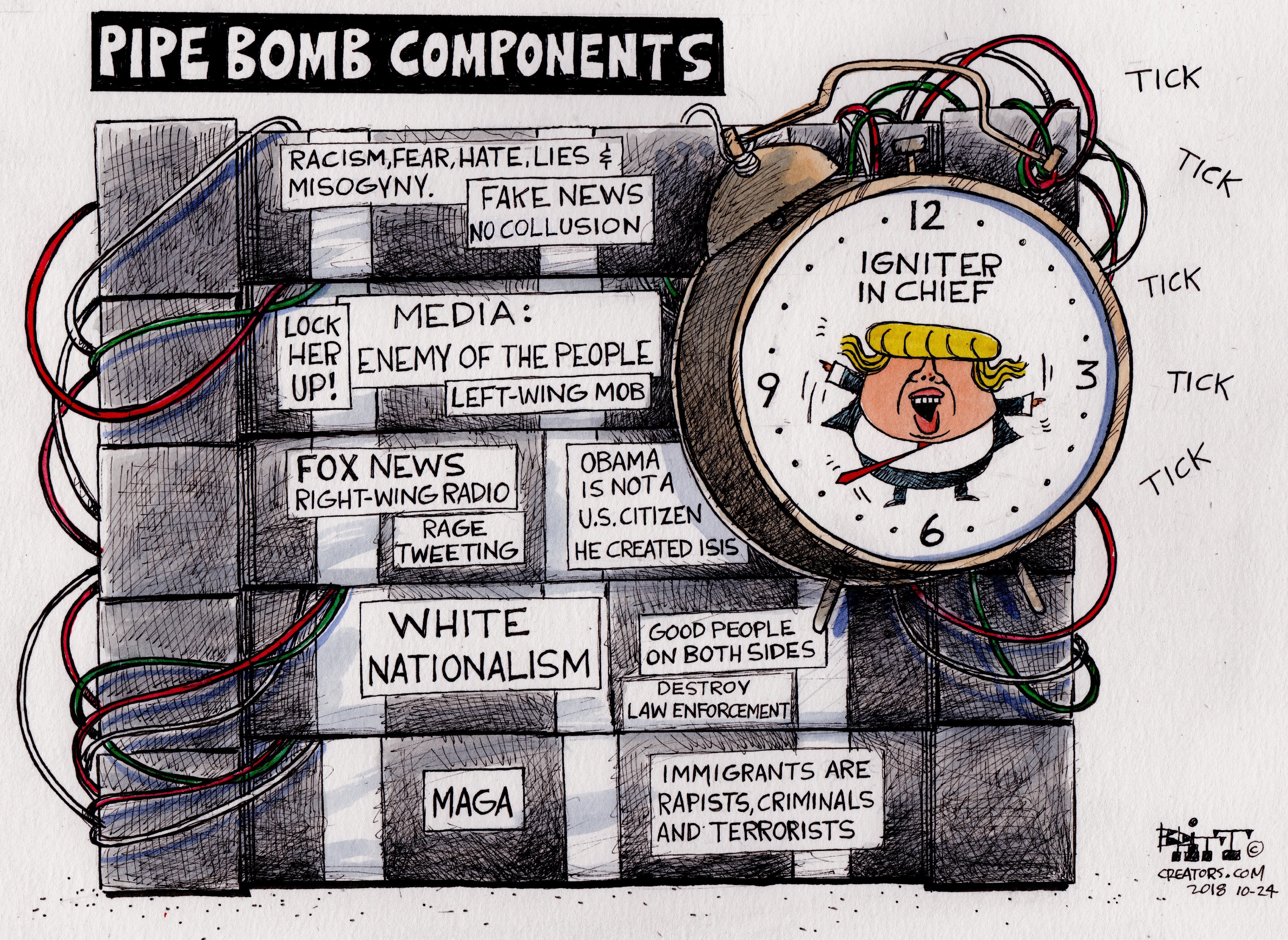U.S. Trump igniter in chief pipe bomb fake news hate lies white nationalism MAGA