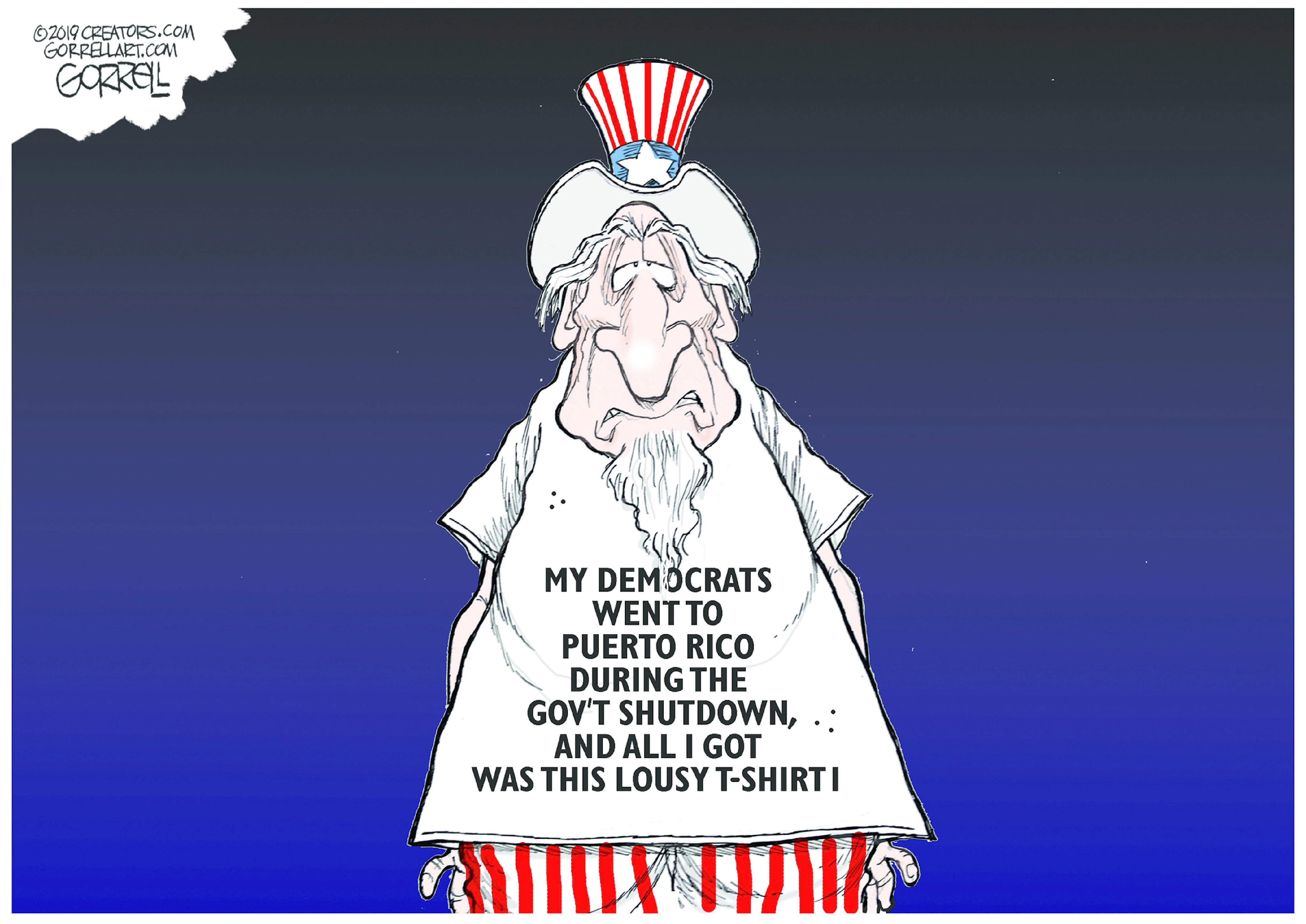 Political cartoons U.S. Uncle Sam democrats Puerto Rico government shutdown