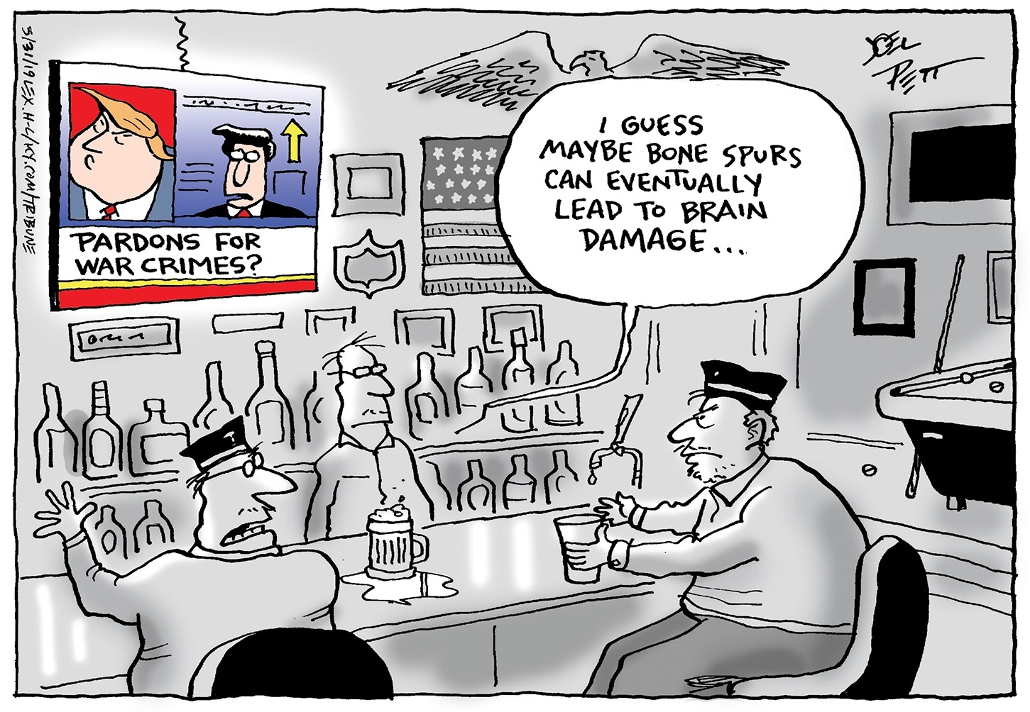 Political Cartoon U.S. Trump War Crimes Pardon US Military