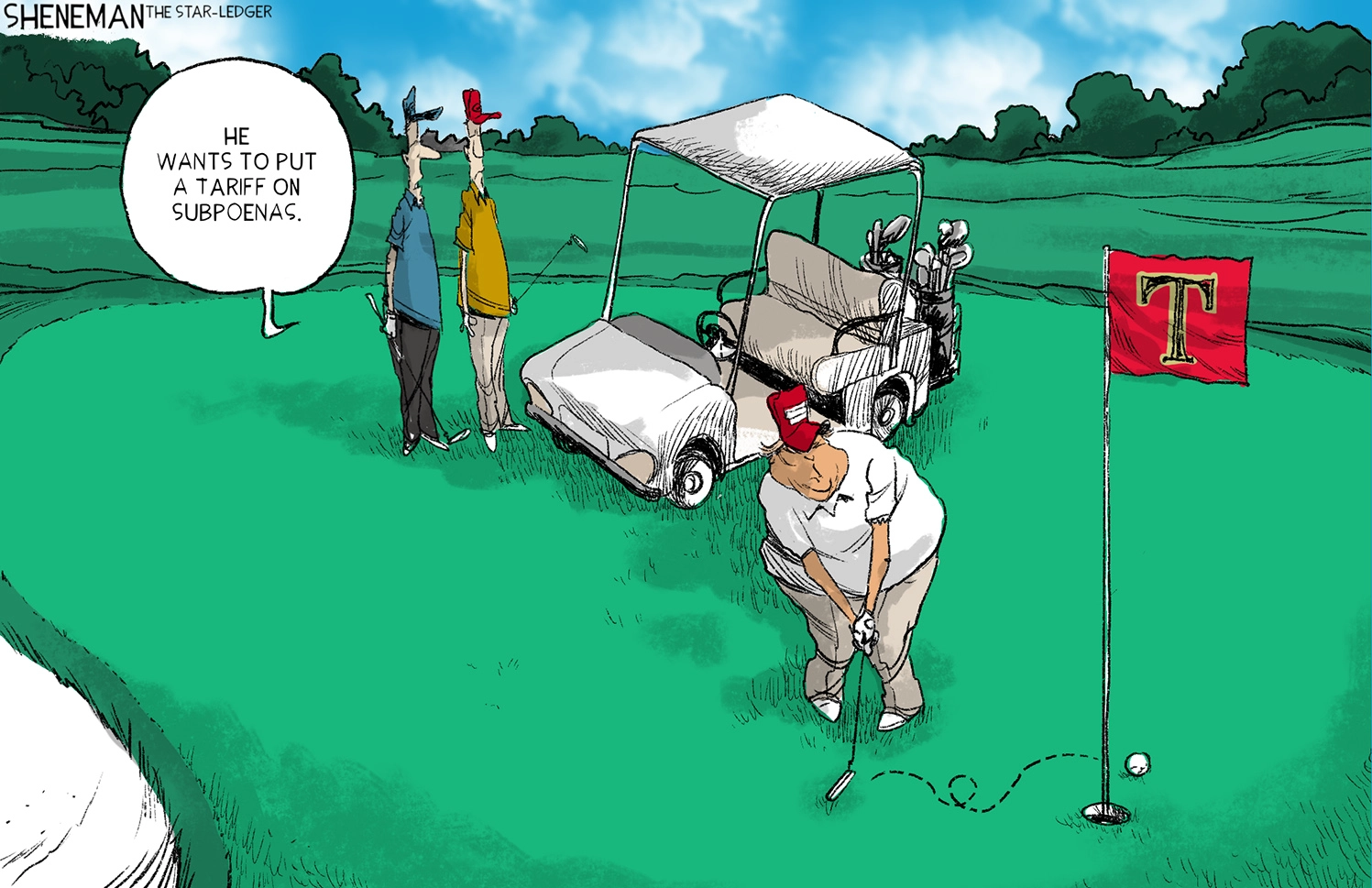 Political Cartoon U.S. Trump Golf Congressional Subpoena Tariffs