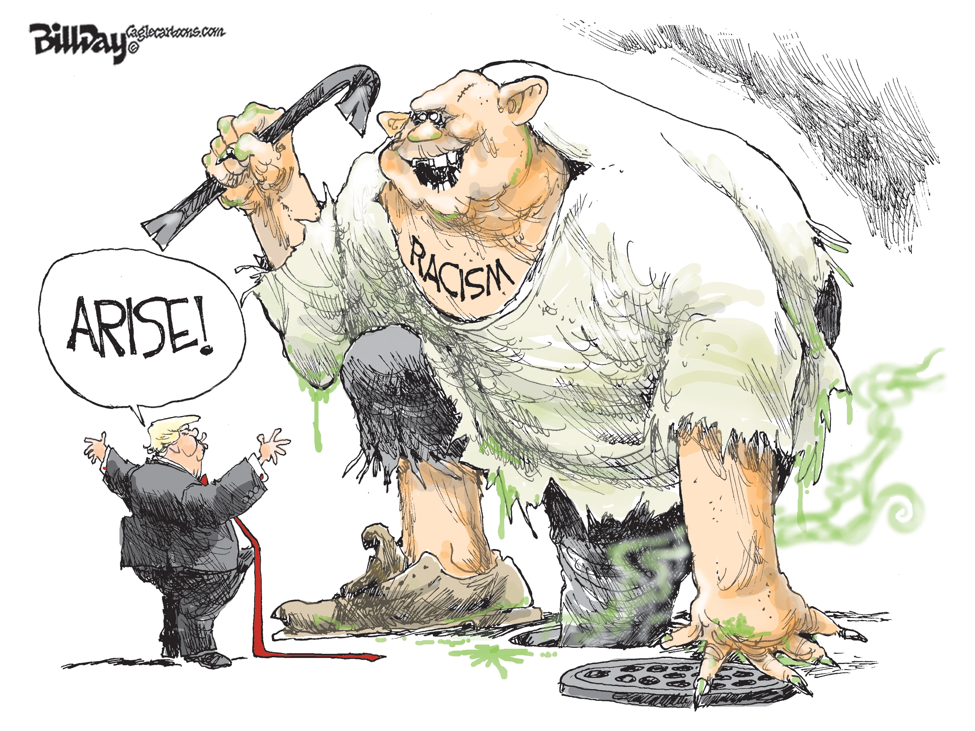 Political Cartoon U.S. Sewer Monster Racism Trump