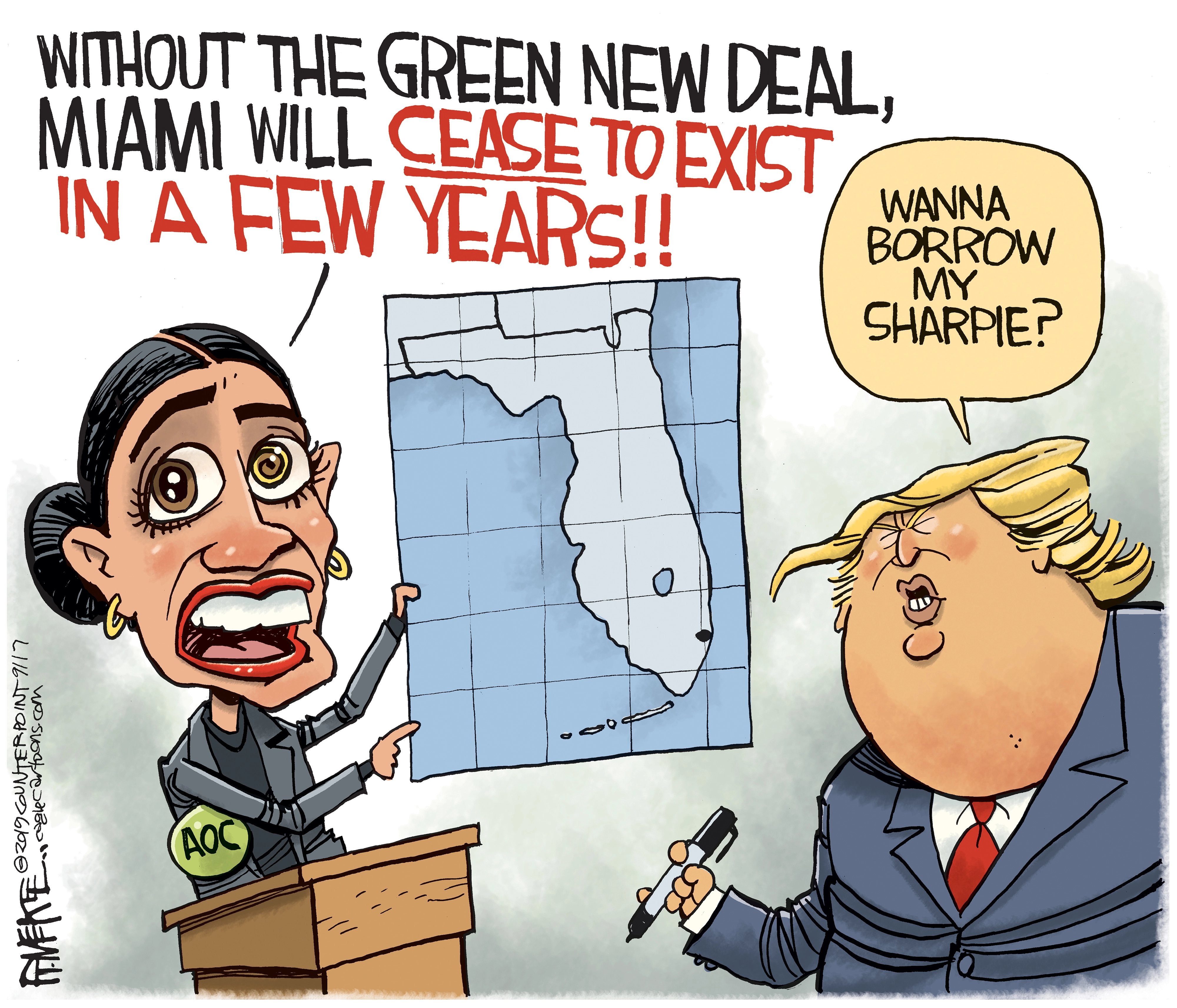 Political Cartoon U.S. Trump AOC Trump Miami Map Sharpie