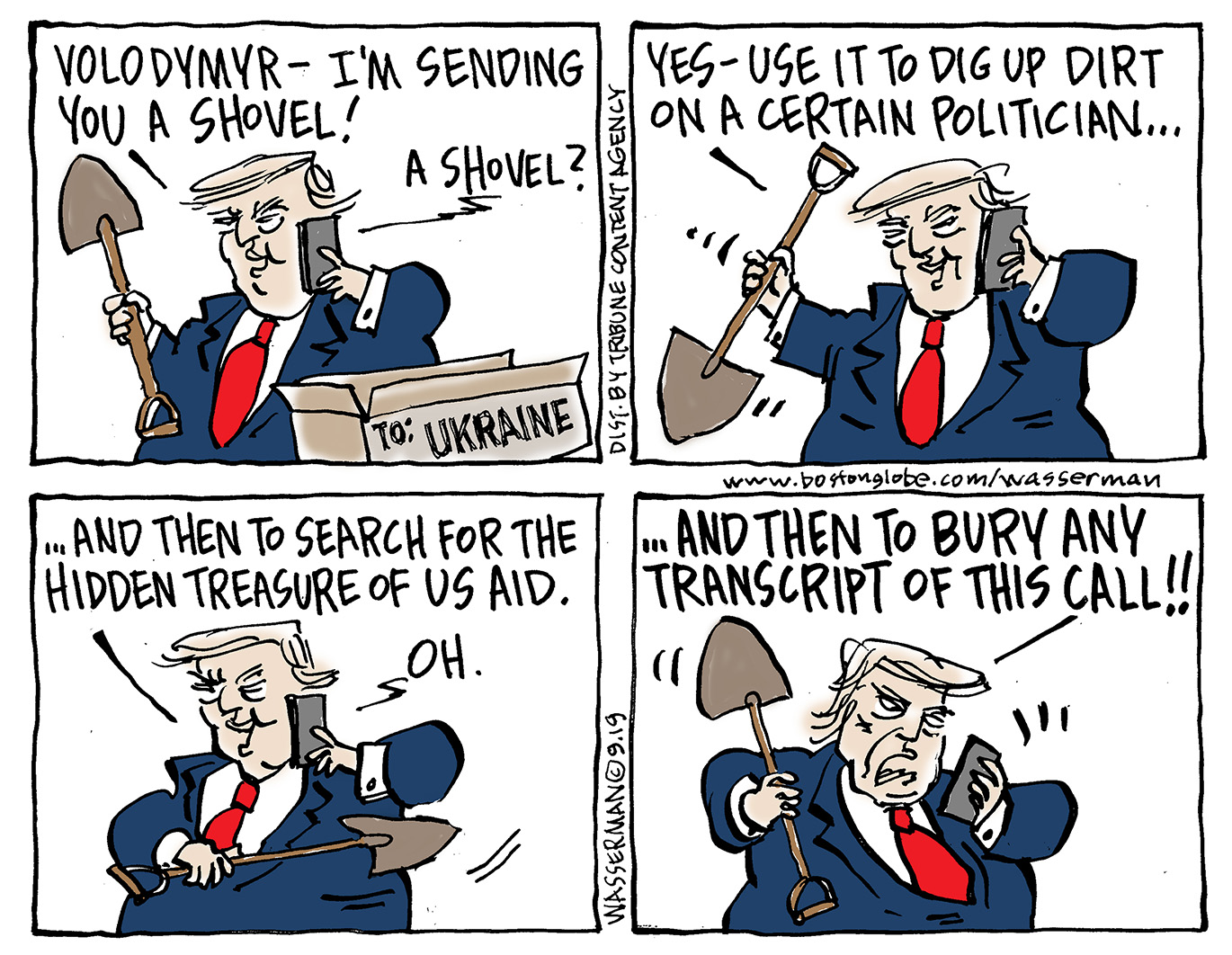 Political Cartoon U.S. Trump Ukraine Phone Call Shovel