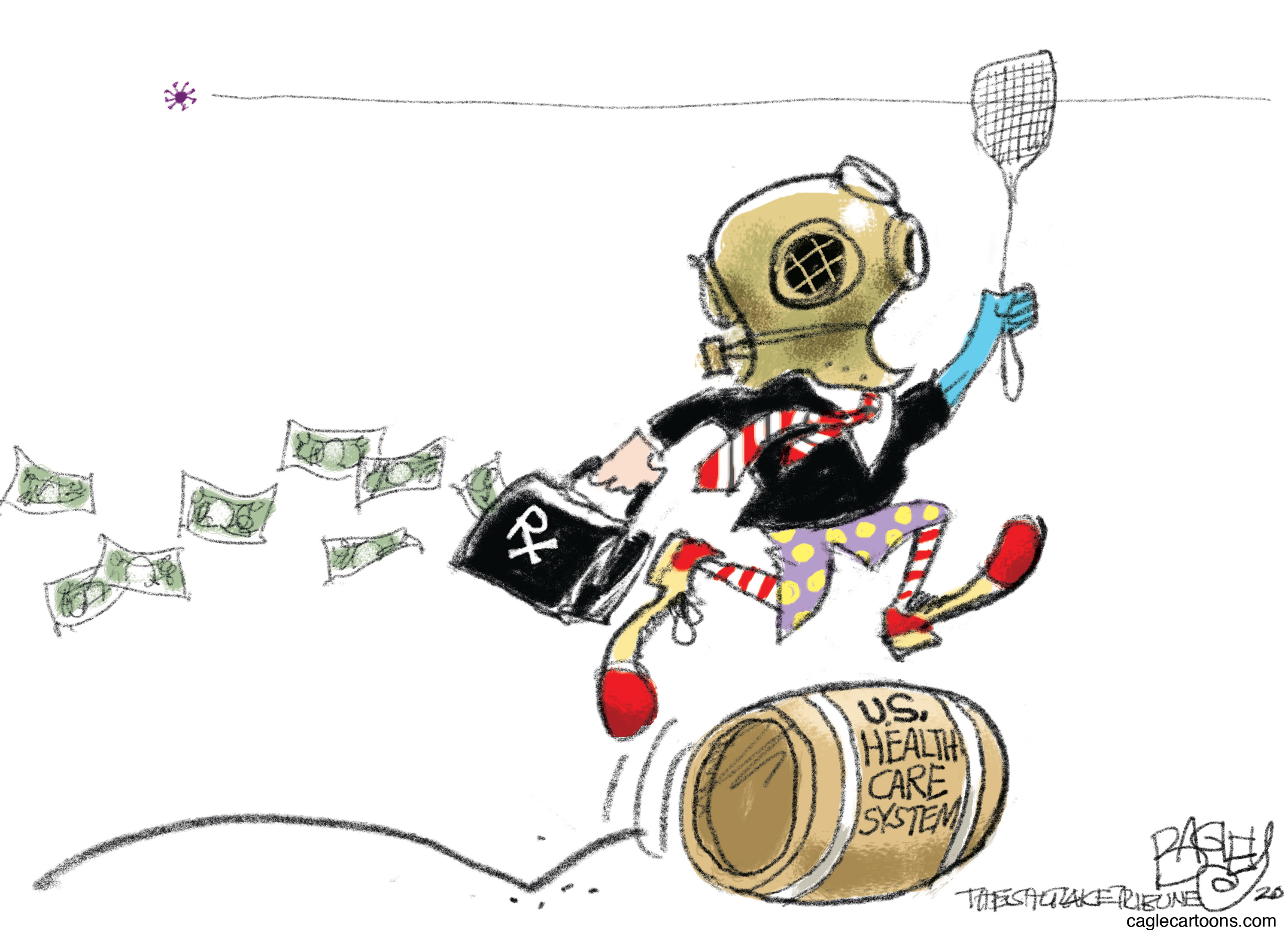 Editorial Cartoon U.S. health care big pharmaceutical CDC coronavirus pandemic testing
