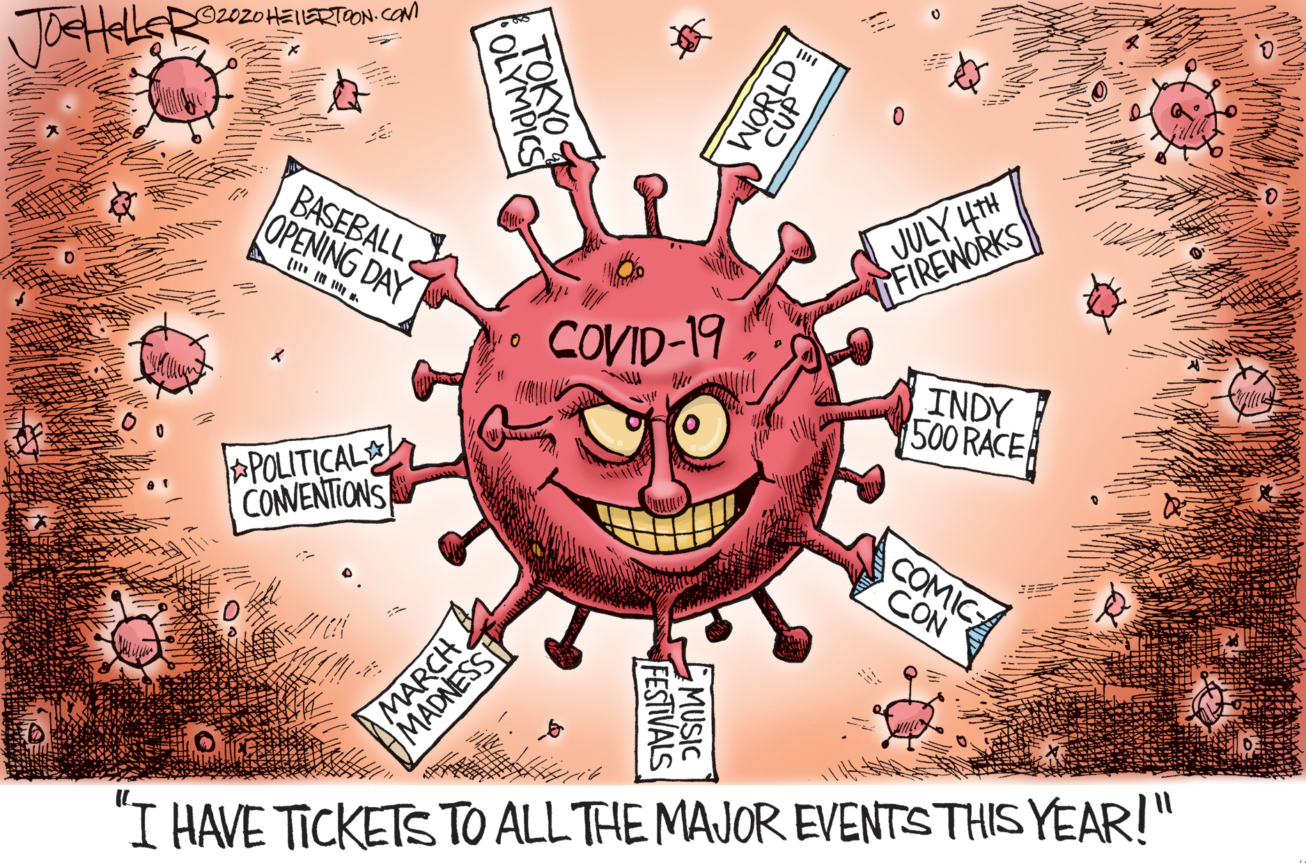 Editorial Cartoon World COVID-19 Coronavirus Olympics July 4th comic cons political conventions sporting events