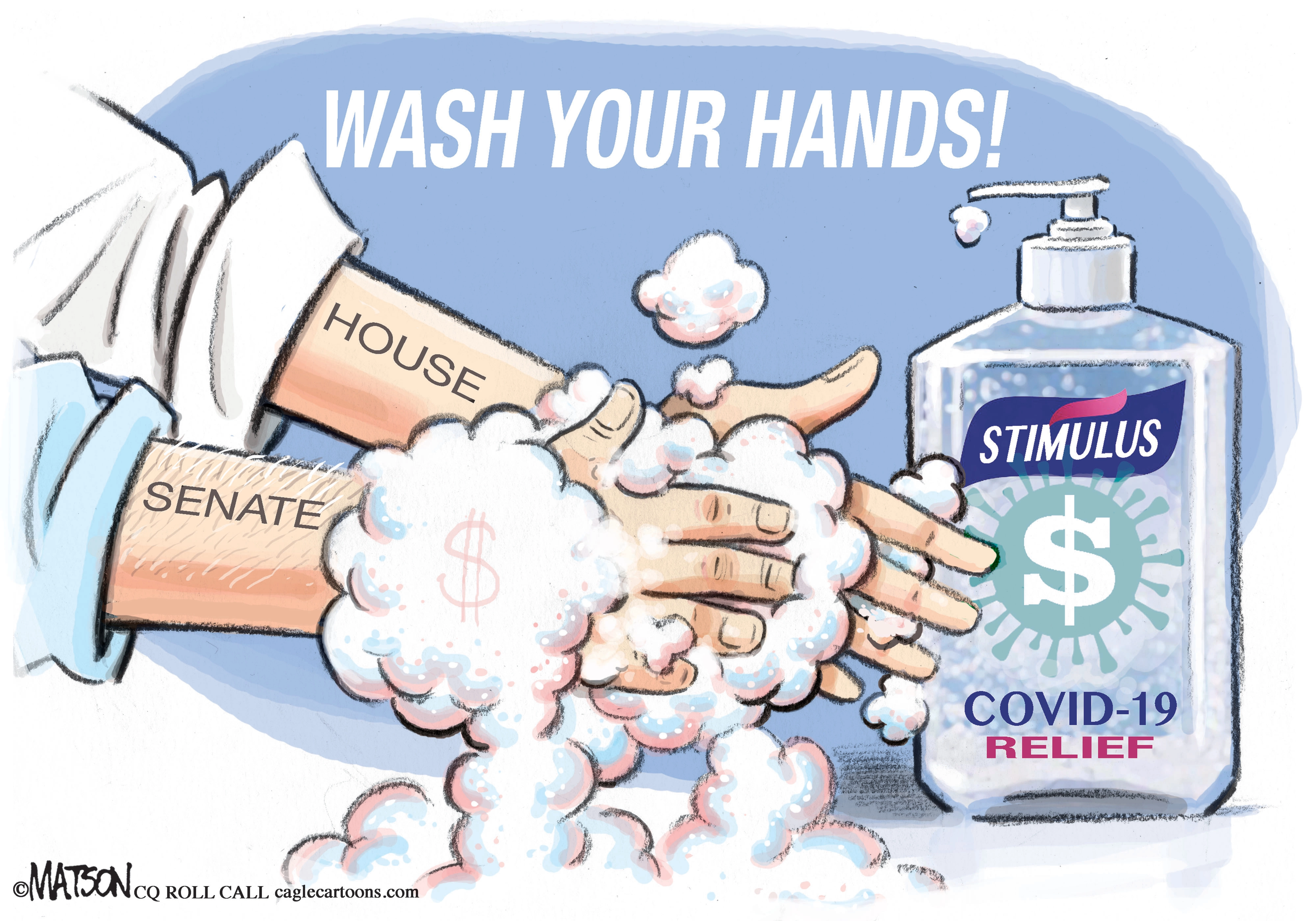 Political Cartoon U.S. Trump House of Representatives Senate stimulus hand washing