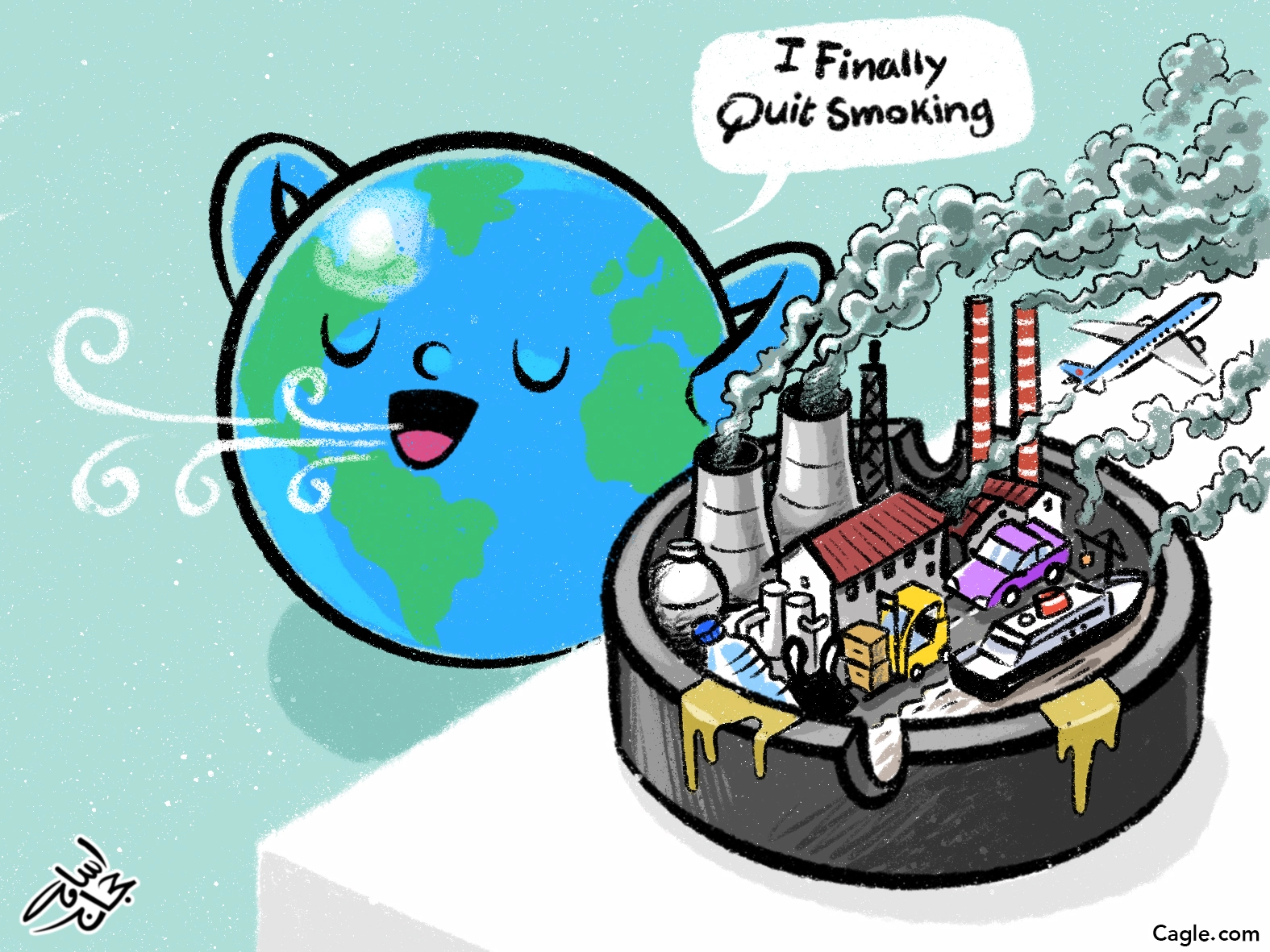 Editorial Cartoon U.S. coronavirus environmental consequence carbon fuels down Earth