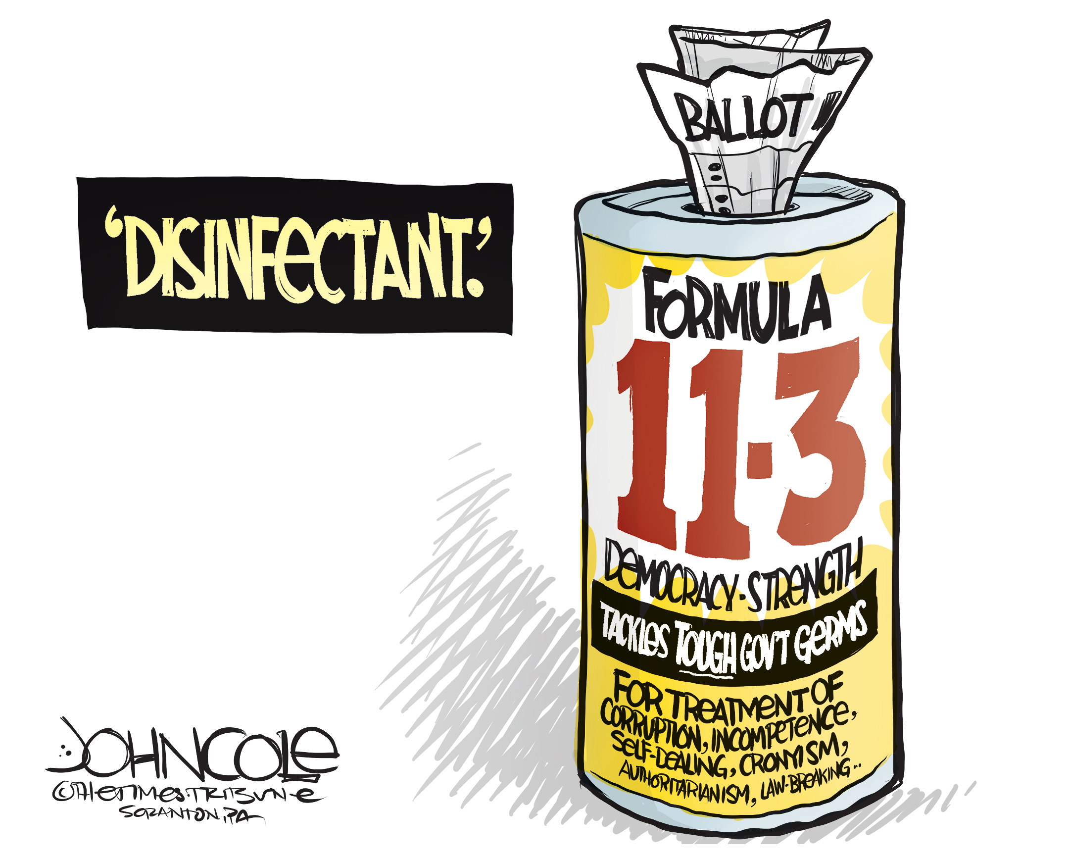 Political Cartoon U.S. formula cleaner removes ballots 2020 election